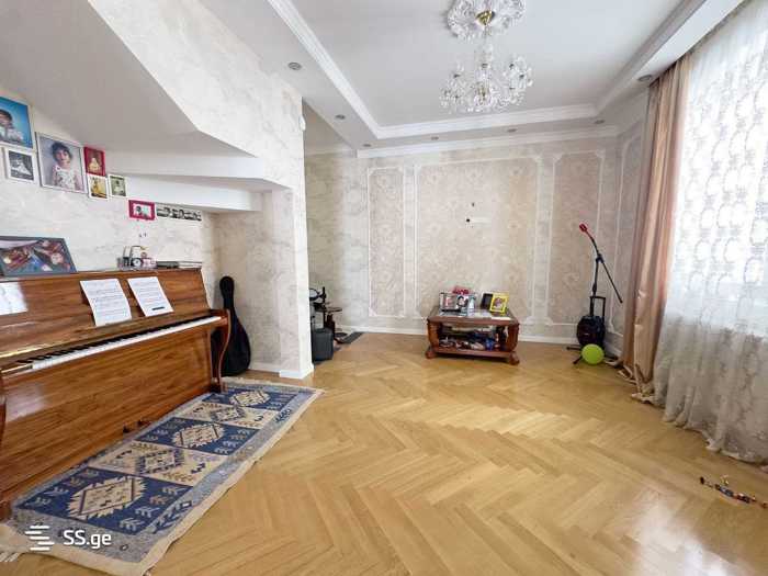 იყიდება თბილისის ცენტრალურ უბანში 2 სართულიანი კერძო სახლი (თითო სართული 115კვ.მ, შიდა, ოთახების სუფთა სივრცე კედლების გარეშე -92კვ.მ). სახლი არის ახალი გარემონტებული, აშენებულია ძველი რუსული აგურით, მეორე სართულზე გამოყენებულია 30 სმ სისქის პემზის ბლოკი. სრულად შეკრულია ბეტონის სარტყელით და ბეტონის ფილით. პერველსა და მეორე სართულს შორის იატაკი ხისაა, გადებულია 20*10-ზე კოჭები ყოველ 40 სმ-ში, შავი იატაკია 5სმ სისქის ფიცრები, შემდეგ 10-იანი ფანერა და პარკეტი. სართულებს შორის, ხის იატაკზე თბო იზოლაციის მიზნით აკრულია 10სმ სისქის პენოპლასტი. მოწყობილია ყველაფრით და ყველანაერად. პირველ სართულზე განთავსებულია შემოსასვლელი, სასადილო ოთახი, ზალა, მისაღები, კაბინეტი, სააბაზანო (დუშით), მეორე სართულზე ოთხი საძინებელი, კორიდორი (9მ*1.5მ), სააბაზანო (ჯაკუზით) და სამრეცხაო ოთახით. მეორე სართულზე დაგებულია კოპიტის პარკეტი, პირველზე მუხის პარკეტი და ნაწილობრივ ესპანური მეტლახი (არის იატსკის გათბობა). მეორე სართულზე ასავლელი კიბე მუხისაა. აქვს ორი ეზო (ჯამში რეგისტრირებული 255კვ.მ), ორივე ოზოში დაგებულია გაზონი და გაყვანილია სარწყავი სისტემა. ეზოში მდებარეობს ე.წ. საზაფხულო სამზარეულო (14-კვ.მ), რომელიც მოწყობილია სრულად ავეჯით და ტექნიკით. სახლს აქვს 45 კვ.მ სარდაფი. სარდაფში არის ასევე 1 საპირფარეშო და იქ განთავსებულია გათბობის ქვაბები (ყოველ სართულს ცალკე გათბობის და ცხელი წყლის სისტემა აქვს, იზოლირებული სხვა სართულისაგან). საბუთები წესრიგშია.