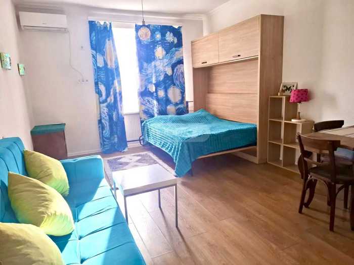 მყუდრო სტუდიო ბინა ლამაზი ხედით თბილისის ცენტრში ქირავდება მყუდრო სტუდიო ბინა შუაგულ თბილისში. იდეალურია მათთვის, ვინც აფასებს სასიამოვნო გარემოს, ქალაქის რითმს და მოსახერხებელ ადგილმდებარეობას. მარჯანიშვილის მეტროსადგური, მშრალი ხიდი და დედაენის პარკი ფეხით სავალ მანძილზეა. ქუჩის პარალელურად, აღმაშენებლის გამზირზე განლაგებული ფეხმავალი ზონა მრავალი კაფეებითა და ბარებით, შესანიშნავია საღამოს გასეირნებისთვის. ფანჯრიდან იშლება ლამაზი ხედი მდინარეზე, მთაწმინდასა და სატელევიზიო ანძაზე. საღამოს ხედი განსაკუთრებით შთამბეჭდავია. ბინა მორგებულია ერთი ადამიანზე ან წყვილზე და აღჭურვილია საჭირო საყოფაცხოვრებო ნივთებით. შინ დაგხვდებათ კონდიციონერი და ცენტრალური გათბობა. სტუდიო მდებარეობს მოწესრიგებული 5-სართულიანი შენობის მე-2 სართულზე. მშვიდი ეზო დაცულია შლაგბაუმით, არის პარკირების საშუალებაც. კომუნალურული გადასახადები დამატებით გამოითვლება თვიურად, მოხმარების მიხედთვით. წინასწარ იხდით პირველი და ბოლო თვის საფასურს ვიზიტის ჩასანიშნად დამიკავშირდით ნომერზე