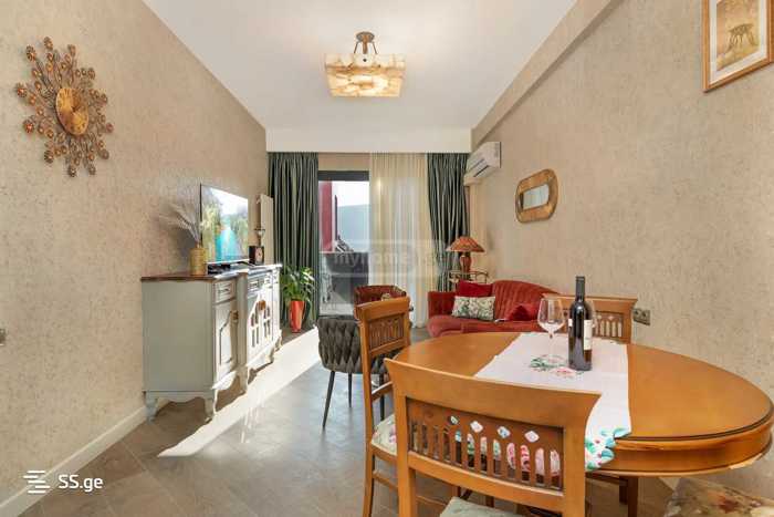 ქირავდება ძველ თბილისში ახალ აშენებულ პრემიუმ კლასის დაცულ კომპლექსში 2 ოთახიანი ბინა ტერასით, ხედით ნარიყალაზე და ძველ თბილისზე, სრულად მოწყობილი პრემიუმ კლასის ავეჯით და ტექნიკით, ავტოფარეხით, დიდი შიდა მოწყობილი დაცული ეზოთი, ეზოში გაშარდენი: 10 წუთი / 900 მეტრი ნარიყალის ციხე-სიმაგრე: 14 წუთი / 1.3 კილომეტრი სამების საკათედრო ტაძარი: 6 წუთი / 400 მეტრი თავისუფლების მოედანი: 20 წუთი / 1.9 კილომეტრი მეტროსადგური „ავლაბარი“: 4 წუთი / ეზოში განთავსებულია რესტორნები , მაღაზიები , სალონი და სატრენაჟორო დარბაზი.