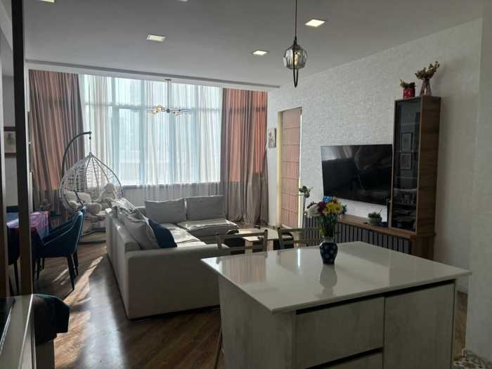 იყიდება ახალ აშენებულ კორპუსში არასტანდარტული 4 ოთახიანი ბინა.სტუდიოს ტიპის მისაღებით და სამზარეულოთი.3 იზოლირებული საძინებლით,2 სველი წერტილით,2 აივნით.ბინაში რჩება ავეჯი და ტექნიკა