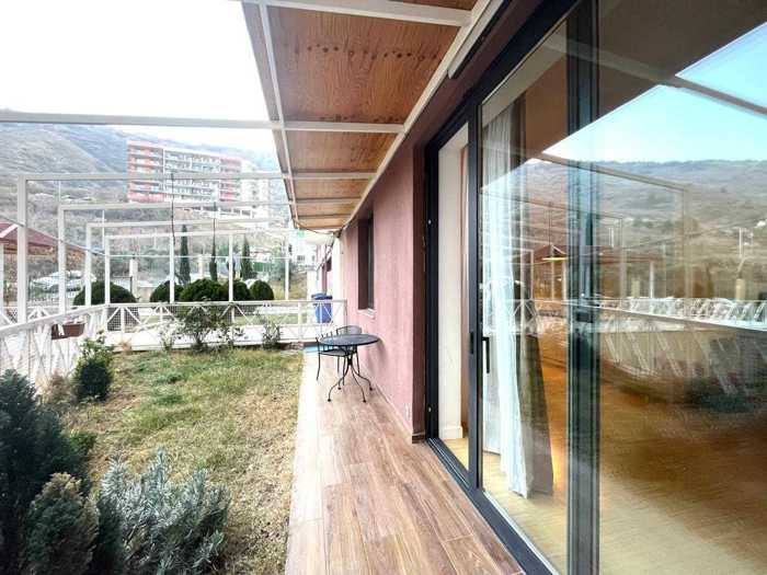 ქირავდება ბინა, სტუდიო საძინებლით, ზემო ვერაზე, ოთხ სართულიან საკუთარ სახლში, ეზოთი. ეზო არის შემოღობილი და დაცული. ეზოდან გასასვლელია მთაწმინდის მთაზე სავალ ბილიკებზე. ბინა არის პირველ სართულზე და აღმოსავლეთ და ჩრდილოეთ მხარეს აქვს კეთილმოწყობილი ეზო, 150 კვ.მ. ბინას აქვს ორი შესასვლელი- მთავარი, ღია სადარბაზოდან და ეზოდან. საძინებელი არის 17 კვ.მ. დიდი სათავსოთი. აბაზანა 7 კვ.მ. დუშით. სტუდიო ოთახი - 36 კვ.მ. ბინა მდებარეობს მთაწმინდის მთის ძირში, წყნარ და მშვიდ ქუჩაზე. გამოირჩევა მწვანე საფარით და სუფთა ჰაერით. 50 მეტრში არის ავტობუსის გაჩერება და მოდის 2 ნომერი. ავტობუსი გადის ყოველ 10 წუთში და მიდის რუსთაველის მეტროსთან.