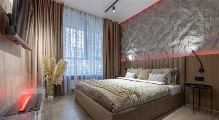 ქირავდება ახალი აშენებული, ნათელი და მყუდრო ბინა დღიურად, 80 კვ.მ ფართობით. ბინა მდებარეობს 11-სართულიანი კორპუსის მე-10 სართულზე და შედგება ორი ოთახისგან, რომელთაგან ერთი არის კომფორტული საძინებელი. ბინაში განთავსებულია თანამედროვე საძინებელი, სრულად აღჭურვილი სამზარეულო და სასადილო ოთახი დიდი სასადილო მაგიდით. ასევე, ბინას აქვს აივანი, საიდანაც იშლება სასიამოვნო ხედები. ახალი რემონტი და თანამედროვე ინტერიერი ქმნის განსაკუთრებულ სიმყუდროვესა და კომფორტს. იდეალური არჩევანია მათთვის, ვისაც სურს მშვიდ გარემოში განტვირთვა და დასვენება.
