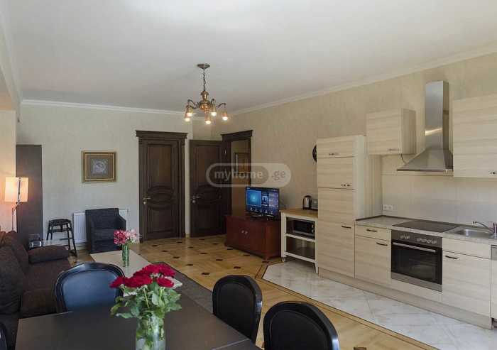ეს უნიკალური ბინა სრულად აღჭურვილია უმაღლესი ხარისხის ავეჯითა და თანამედროვე ტექნიკით. ის იდეალურად აერთიანებს ეკოლოგიურად სუფთა გარემოსა და თანამედროვე საცხოვრებლის კომფორტს. ბინის მახასიათებლები: მაღალი ხარისხის მუხის პარკეტი და წაბლის შიდა კარებები. ცენტრალური გათბობა და კონდიციონერები ყველა ოთახში. ორი სრულფასოვანი სველი წერტილი და ჭურჭლის სარეცხი მანქანა. ტელევიზორები საძინებელში და მისაღებ ოთახში. ქუჩის პარკინგის შესაძლებლობა. თანამედროვე ლიფტით აღჭურვილი, მოვლილი და მყუდრო შენობა. ბინა განთავსებულია წყნარ და მშვიდ ქუჩაზე, რომელიც უზრუნველყოფს მშვიდ და კომფორტულ ცხოვრებას.