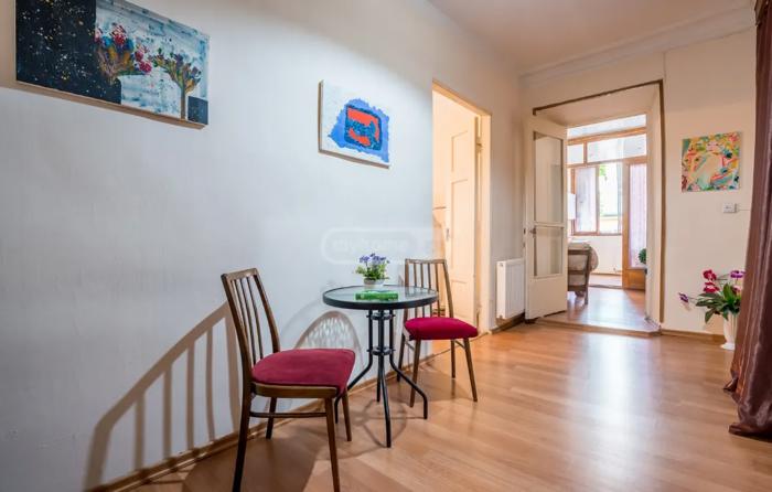 იყიდება ბინა მთაწმინდაზე, ოპერის უკან. სახლი არის ისტორიულ უბანში, ტურისტულად აქტიურ ადგილზე. ახალი რემონტით, ცენტრალური გათბობის სისტემით, კონდიციონერით, სამზარეულოდან გასასვლელი ეზოში ჩასასვლელი კიბით, ანტიკვარული და რესტავრირებული შესასვლელი კარებით. ასევე მოწესრიგებული სუფთა სადარბაზოთი, რაც ამ უბანში იშვიათია. ბინის ფართი არის 60 კვ. მ, ამას ემატება ანტრესოლი 6 კვ. მ. და კიდევ მოყვება 6 კვ. მ. სარდაფი, რომელიც არის გაფორმებული საკადასტრო კოდით. იყიდება ავეჯით და ტექნიკით, რაც სახლშია და ფოტოებზეც ჩანს.
