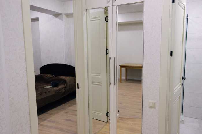 ქირავდება ახალაშენებულ კორპუსში არასტანდარტული პროექტის ბინა, რომელიც მდებარეობს 21-ე სართულზე 22-დან. ბინის საერთო ფართობი შეადგენს 45 კვ.მ-ს და მოიცავს ორ ოთახს, მათ შორის ერთ საძინებელს. 2 თვის წინასწარი გადახდით