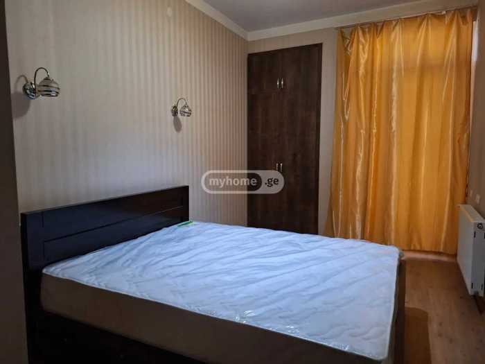 ქირავდება ახალი აშენებული, არასტანდარტული პროექტის ბინა 80 კვ.მ ფართობით. ბინა მდებარეობს 12-სართულიანი კორპუსის მე-10 სართულზე. განლაგებულია 2 ოთახი, მათ შორის 1 საძინებელი. ბინას არ აქვს აივანი. თანამედროვე სტანდარტების შესაბამისი ახალი შენობა უზრუნველყოფს კომფორტულ და მყუდრო გარემოს. ფართო