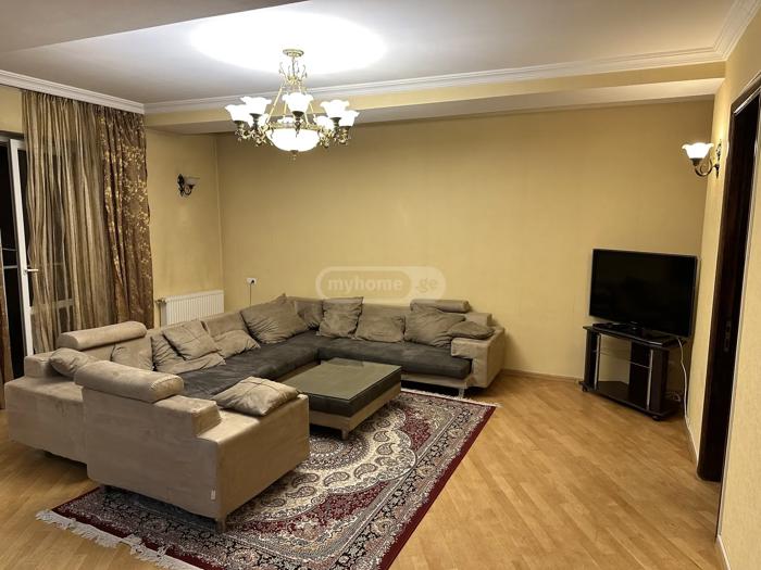 სამ ოთახიანი ბინა (ორი საძინებლით) ავეჯთ და თექნიკით. კონდიციონერი ყველა ოთახში, ჭურჭლის სარეცხი მანქანა და სარეცხის მანქანა საშრობით.