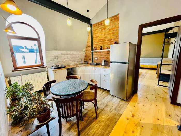 იყიდება 105 კვ.მ 3 ოთახიანი მანსარდის ტიპის ბინა 2 საძინებლით. დ.აღმაშენებლის გამზირი86/ მარჯანიშვილის მოედნი. იდეალურია ვარიანტია გასაქირავებლად: ყველა ოთახში კონდიციონერი და ტელევიზორი. ლიფტი ადის მე-5 სართულამდე.