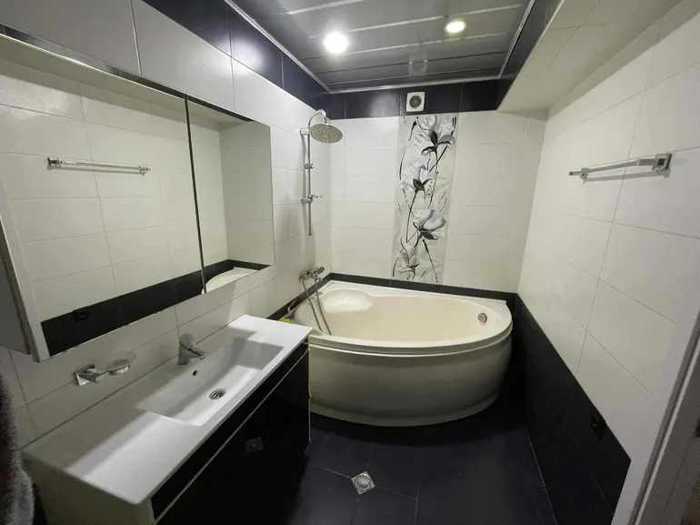 ორი საძინებელი, დიდი მისაღები ოთახი (დაახ. 60 კვ.მ.), იზოლირებული სამზარეულო, განიერი სველი წერტილი. > ყველა ოთახი პირველადი განათებით, ავეჯი და ტექნიკა რჩება. > ცენტრალური გათბობა, ინტერნეტი, ტელევიზია, ფიქსირებული ტელეფონი, კონდიციონერი. > აივნიდან იშლება ხედი ზღვისუბნის პარკზე. ეზოში კალათბურთის მოედანი. თბილისის ზღვამდე 15 წუთის სავალია.