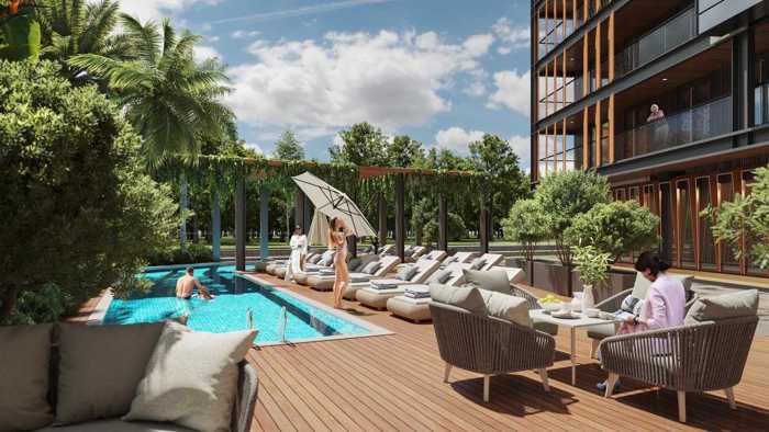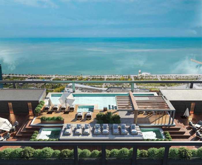 საფეხურები ლორთქიფანიძე 2 საძინებელი 1+1 43 კვ.მ. მთის ხედით ზღვის პირველი ხაზი პრემიუმ კლასის შენობა მიღება აუზი კაფეტერია რესტორანი სპა სალონი მე-11 სართული $85,000