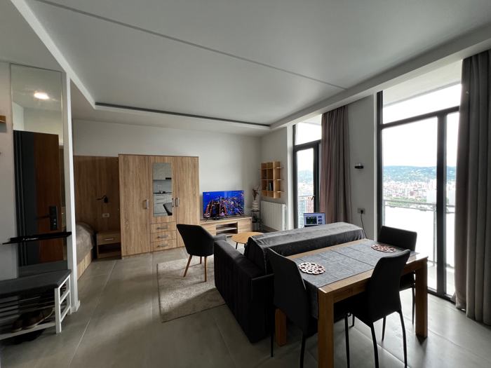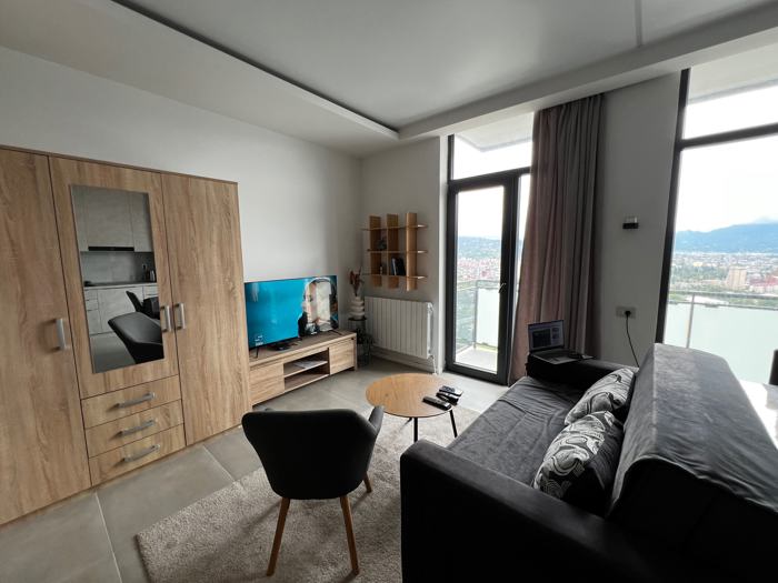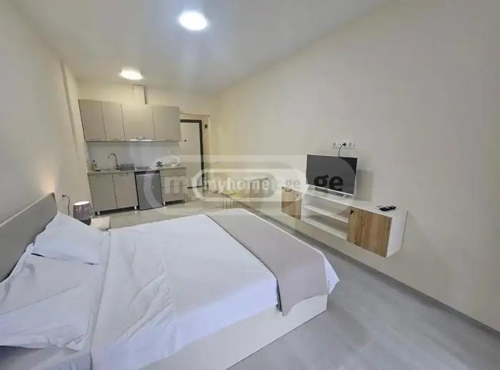 ბათუმში ქირავდება სტუდიოს ტიპის ბინა, ზღვიდან 300 მეტრი. ახალ ბულვარზე ხედით. მეტროსითის გვერდით. გამოყოფილი საძინებლით, პრემიუმ რემონტით, ავეჯით და ტექნიკით სრულად აღჭურვილი, (მაცივარი, ინდუქციური ქურა, სარეცხის მანქანა, ჭურჭლის სარეცხი მანქანა, კონდეციონერი, ცენტრალური გათბობა, ტვ, )