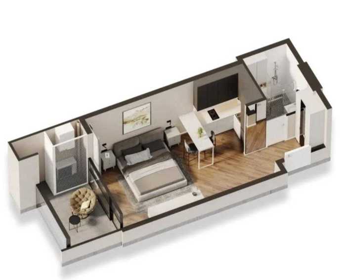 იყიდება გარემონტებული სტუდია. იგი აღჭურვილია ავეჯით და საყოფაცხოვრებო ტექნიკით. ფანჯრები გადაჰყურებს ქალაქს. იგი განკუთვნილია როგორც პირადი საცხოვრებელი და საინვესტიციო. ლოტი 4574ash