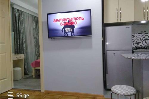 ქირავდება სტუდიოს ტიპის ბინა ხანგრძლივი დროით. გათბობა და ცხელი წყალი არის დენზე. აქვს ცალკე გამოყოფილი სამზარეულო.