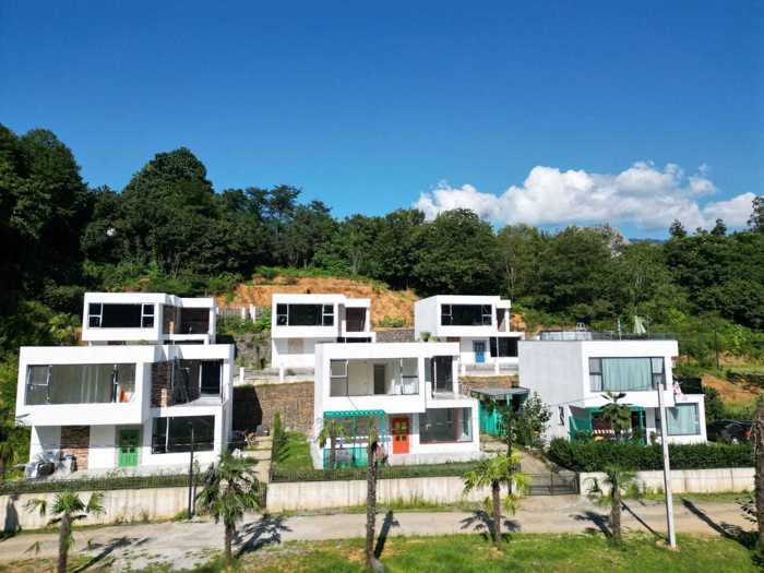•იყიდება/FOR SALE •ვილები ბათუმთან ახლოს •დახურულ კომპლექსში •ორთაბათუმის გამწვანებულ •მშვიდ და მყუდრო გარემოში •მიწის ფართობი: 300 მ² •ნაგებობა 2 სართულიანი: 150 მ² •1 სართული: სტუდიო მისაღები •2 სართული: 3 საძინებელი •ფასი: 160 000 $ •კონდიცია: შავი კარკასი •10 კმ. ბათუმის ცენტრიდან •ინფორმაციისათვის: