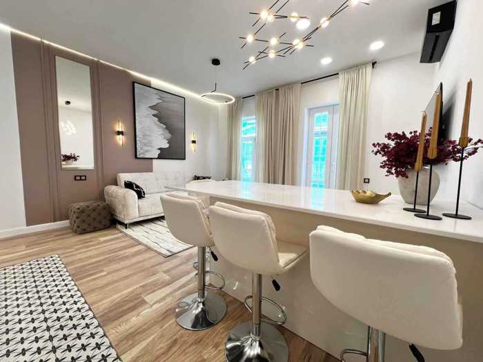 სტილური ბინა დიზაინერული რემონტით ძველი ქალაქის გულში სრულად აღჭურვილი სამზარეულო: ღუმელი, ჩაშენებული მიკროტალღური ღუმელი, ჭურჭლის სარეცხი მანქანა, მაცივარი საყინულით, გამწოვი უზრუნველყოფილია ყველა საჭირო ჭურჭლითა და თეთრეულით ორი სამუშაო ადგილი იდეალურია სახლიდან კომფორტული მუშაობისთვის ფანჯრები გადის მშვიდ და მყუდრო ეზოებზე ორივე მხრიდან ცენტრალური გათბობა და კონდიციონერები სადარბაზოში ახალი რემონტია შენობის ფასადი დასრულების ეტაპზეა, შესასვლელი ფასადიდან