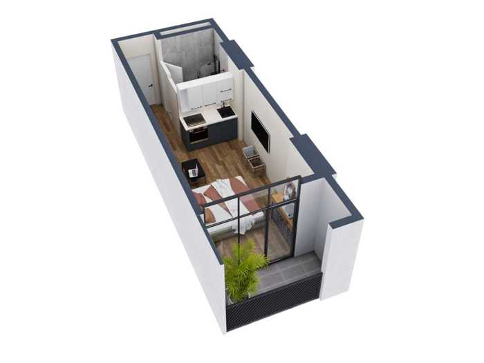 18კვმ. სტუდიო იყიდება 27.9 მ² 19 სართულზე. ფასი - 39 897 $. სტილური და ნათელი სტუდია თანამედროვე მაღალსართულიან კომპლექსში. გაწვდილი განლაგება, ბალკონი სასიამოვნო ხედით. პანორამული სარკმლები უზრუნველყოფენ ბევრ ბუნებრივ სინათლეს. კომპლექსის ინფრასტრუქტურა: დაცვა 24/7, ვიდეო დაკვირვება, რეგისტრაცია, პარკინგი, ფიტნეს ცენტრი, აუზები, SPA ზონა, ბავშვის მოედანი, კოვორქინგი, მაღაზიები და კაფეები. ტერიტორია კომფორტულია და გააშენებულია.
