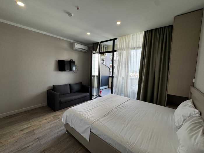 ქირავდება ზღვისა და მთის ხედით აპარტამენტი. კორპუსში არის 4 ლიფტი, აუზი დიდი და საბავშო, მაქვს ბინა. დაცვა, დალაგების სერვისი, უფასო პარკინგი. ბინაში არის გასაშლელი დივანი. ვარ მესაკუთრე