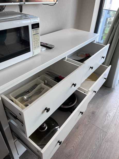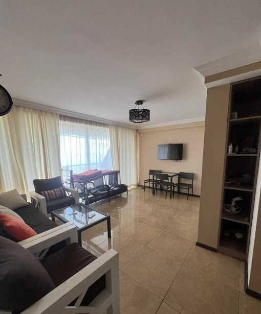 იყიდება აპარტამენტი კვარიათში, ზღვის პირველ ზოლში (2 წუთის სავალზე), მეშვიდე სართულზე ზღვის და მთის ხედით. ორი საძინებელი ორადგილიანი საწოლით, ორივე იზოლირებული ინდივიდუალური აივნით. ბინაში არის დიდი სამზარეულო აღჭურვილი ყველა საჭირო ტექნიკით და ჭურჭლით. მისაღებში გასაშლელი დივანი (2 პერსონაზე). იდეალურია დიდი ოჯახისთვის.