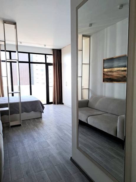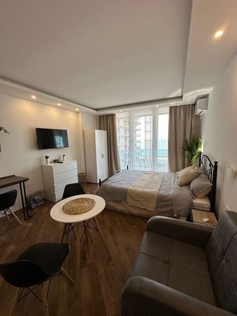 სასწრაფოდ! იყიდება სტუდიოს ტიპის 1 ოთახიანი, გარემონტებული ბინა მე-2 სართულზე, ახალაშენებულ, ელთ ბილდინგის პრესტიჟულ კორპუსში SUNRISE, ავეჯით, ტექნიკით, ახალ ბულვარში, პირველ ზოლში, ზღვიდან 40 მეტრში. ყველა სახის კომფორტით. ტერასაზე ფუნქციონირებს საცურაო აუზი და ლაუნჯ ბარი.