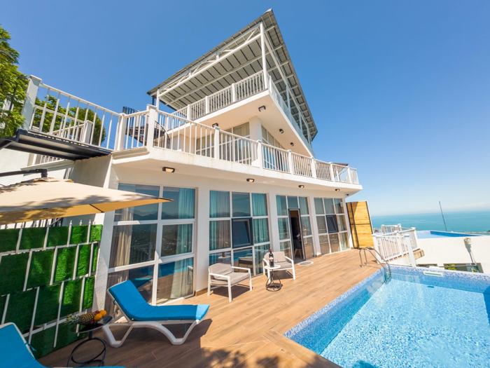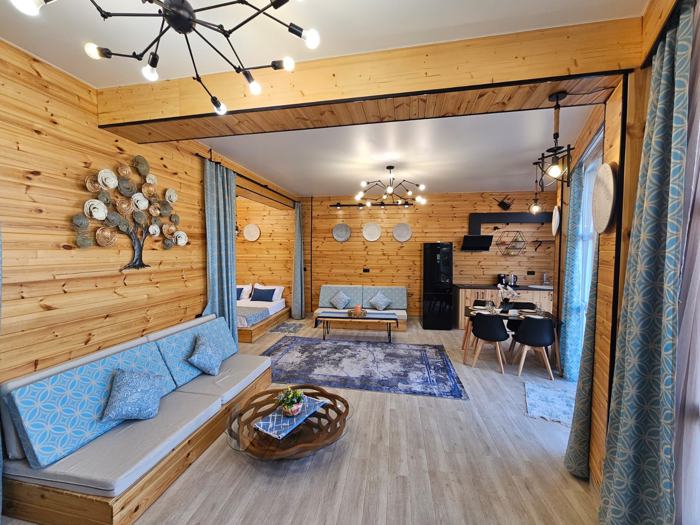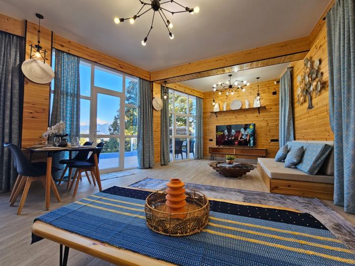 ქირავდება ვილა 5 საძინებლით, ცენტრალური გათბობით. არის ბუხარი, გაზის გამათბობელი, ოთხი კონდიციონერი, სამი სველი წერტილი, გამოყოფილი სამზარეულო, ჭურჭლის სარეცხი მანქანა.