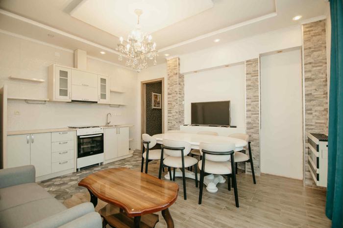 ქირავდება წლიურად ბინა სამი საძინებლით. გათბობა და ცხელი წყალი არის გაზზე. არის კონდიციონერი, აქვს აივანი, ცალკე გამოყოფილი სამზარეულო. არ დაიშვება ცხოველით.