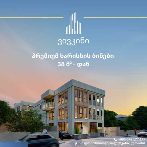 პრემიუმ კლასის ბინა ქუთაისის ყველაზე პრესტიჟულ უბანში, ახლოს წერეთლის უნივერსიტეტთან. იცხოვრეთ იქ, სადაც ხარისხი და ისტორია ერთ სივრცეში იყრის თავს. - მოქმედებს შიდა უპროცენტო განვადება. - პროექტი სრულდება 2026 წელს. ფასებისა და თავისუფალი გეგმარებების გასაგებად დაგვიკავშირდით. მისამართი: ლომონოსოვის 5, წერეთლის უნივერსიტეტის მიმდებარედ
