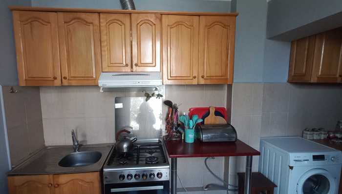 ბინა არის მკუდრო ნათელი სუფთა.დიდი აივანი 30კვ.სართულზე მხოლოდ ვცხოვრობთ 2 ოჯახი.რკინის კარებით.ავეჯი ნაწილობრივ რჩება.მაქვს წყლის 1 ტონიანი ავზი.ეზოში მაქვს პატარა ნაკვეთი სადაც სურვილისამებრ შეგიძლიათ გამოყენება.მაქვს პატარა ბისტანი ხეხილი და ა.შ.დანარჩენი პირადდ