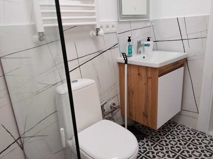 ქირავდება ახალი აშენებული, არასტანდარტული პროექტის ბინა დღიურად, რომელიც მდებარეობს 6-სართულიანი კორპუსის პირველ სართულზე. ბინის საერთო ფართობი შეადგენს 45 კვ.მ-ს და მოიცავს ორ ოთახს: მყუდრო საძინებელსა და მისაღებ ოთახს, სადაც განთავსებულია კომფორტული დივანი. ბინაში არის სრულად აღჭურვილი სამზარეულო და სასადილო სივრცე, ასევე ცალკე ლაუნდრი რუმი, რაც ყოველდღიურ ცხოვრებას კიდევ უფრო კომფორტულს ხდის. ბინას არ აქვს აივანი. ახალი გარემო და თანამედროვე ინტერიერი ქმნის სასიამოვნო ატმოსფეროს, სადაც შეგიძლიათ იგრძნოთ სიმშვიდე და სისუფთავე.