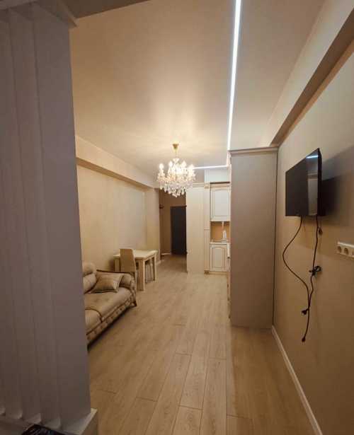 A bright and cozy studio-type apartment is for rent. It is located on the first floor of a premium class complex, with a Carrefour hypermarket. It is equipped with high-quality modern appliances and furniture.