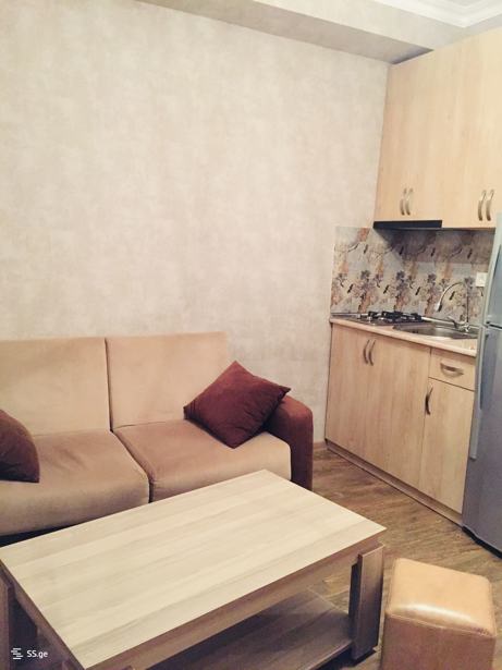 A one-bedroom, renovated apartment is for rent in Vazisubani, 3rd district; the apartment does not have a separate bedroom; price is 800 GEL.