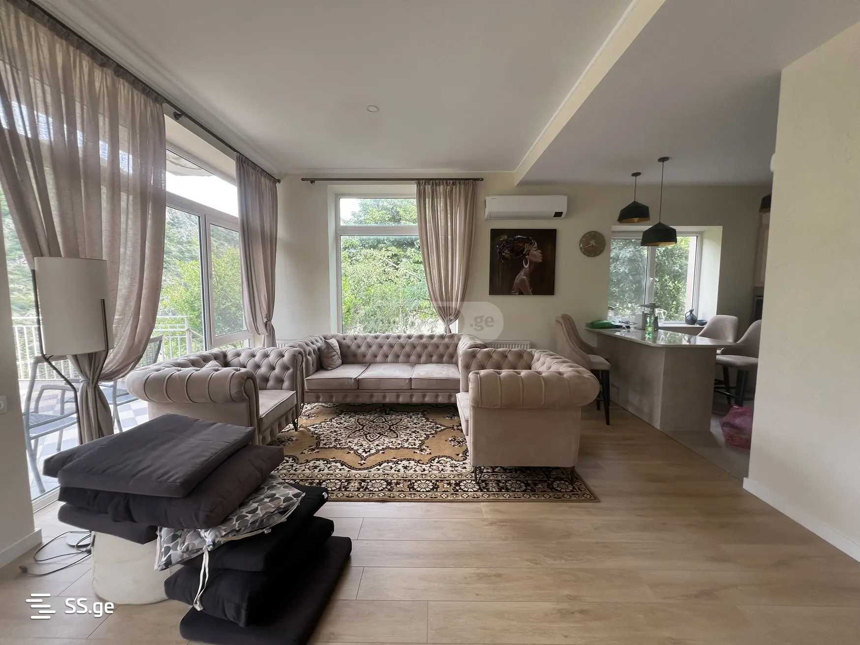Срочно! Сдается в аренду частный дом в Мцхете, "Армаз" площадью 440 кв.м, с участком 1000 кв.м, 2 этажа, 7 комнат, 5 спален (включая 1 спальню с отдельной ванной), 1 кабинет, 4 санузла, большая гостиная, камин, большая кухня-студия и столовая, 1 балкон, 2 большие веранды, откуда открывается невероятный панорамный вид на реку Мтквари. Дом недавно отремонтирован, полностью меблирован всем необходимым и готов к заселению. Идеальное расположение как для проживания, так и для отдыха, зеленая и уютная обстановка, сад с фруктовыми деревьями, охраняемая территория. Для получения подробной информации свяжитесь с нами - цена обсуждаема!