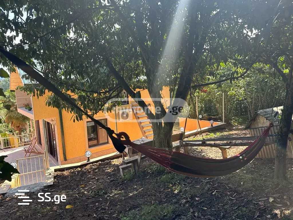 Сдается новый, недавно отремонтированный и меблированный, благоустроенный двухэтажный жилой дом (вилла), расположенный в 10 минутах от города. Бартсхана, на улице Юсупа Пагавы. На первом этаже находятся гостиная, кухня и санузел. На втором этаже расположена спальня, также есть санузел. Кондиционер есть на обоих этажах, отопление осуществляется камином. Большой двор площадью 200 квадратных метров с местами для отдыха и зелеными насаждениями.