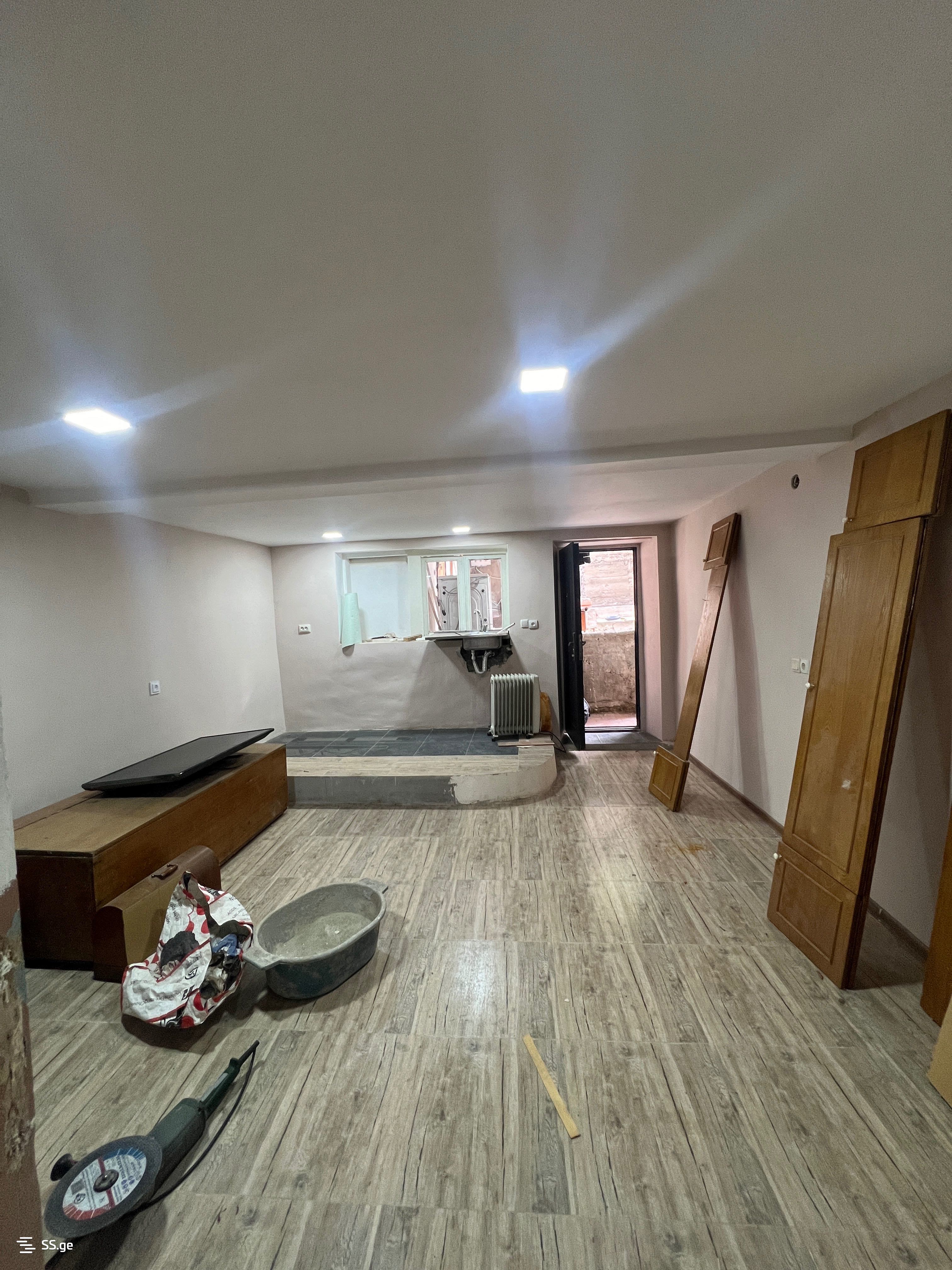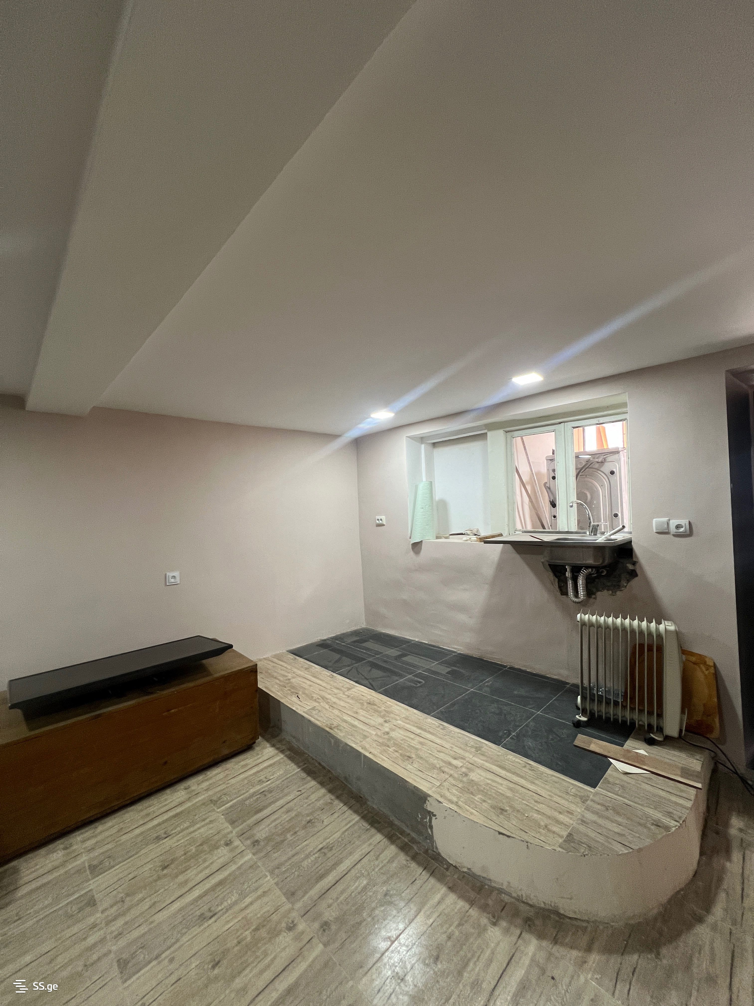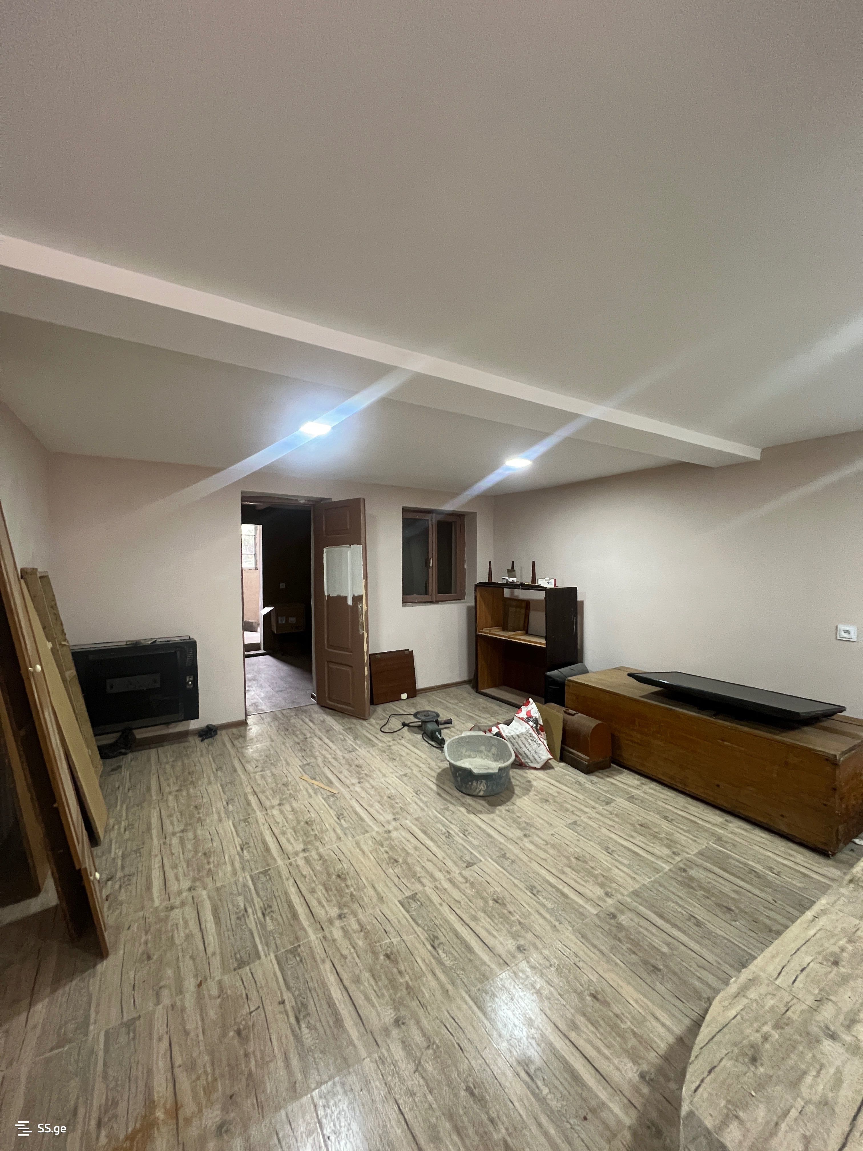 3 комнаты с 2 спальнями (полуподвальная квартира в 2-этажном доме, все комнаты с окнами), текущий ремонт будет завершен через 2 недели, мебель и техника по желанию, цена 800 лари с предоплатой за первый и последний месяц.