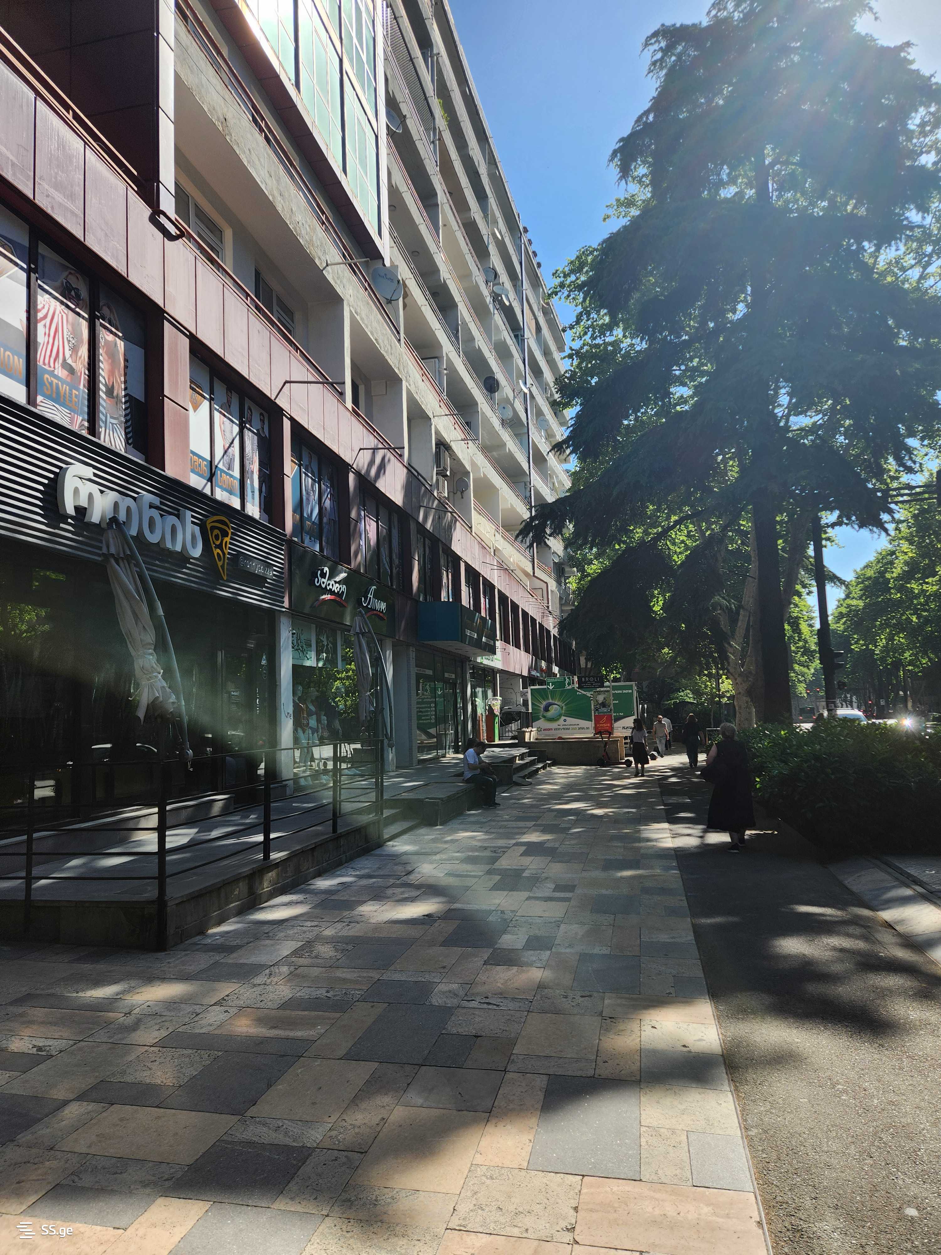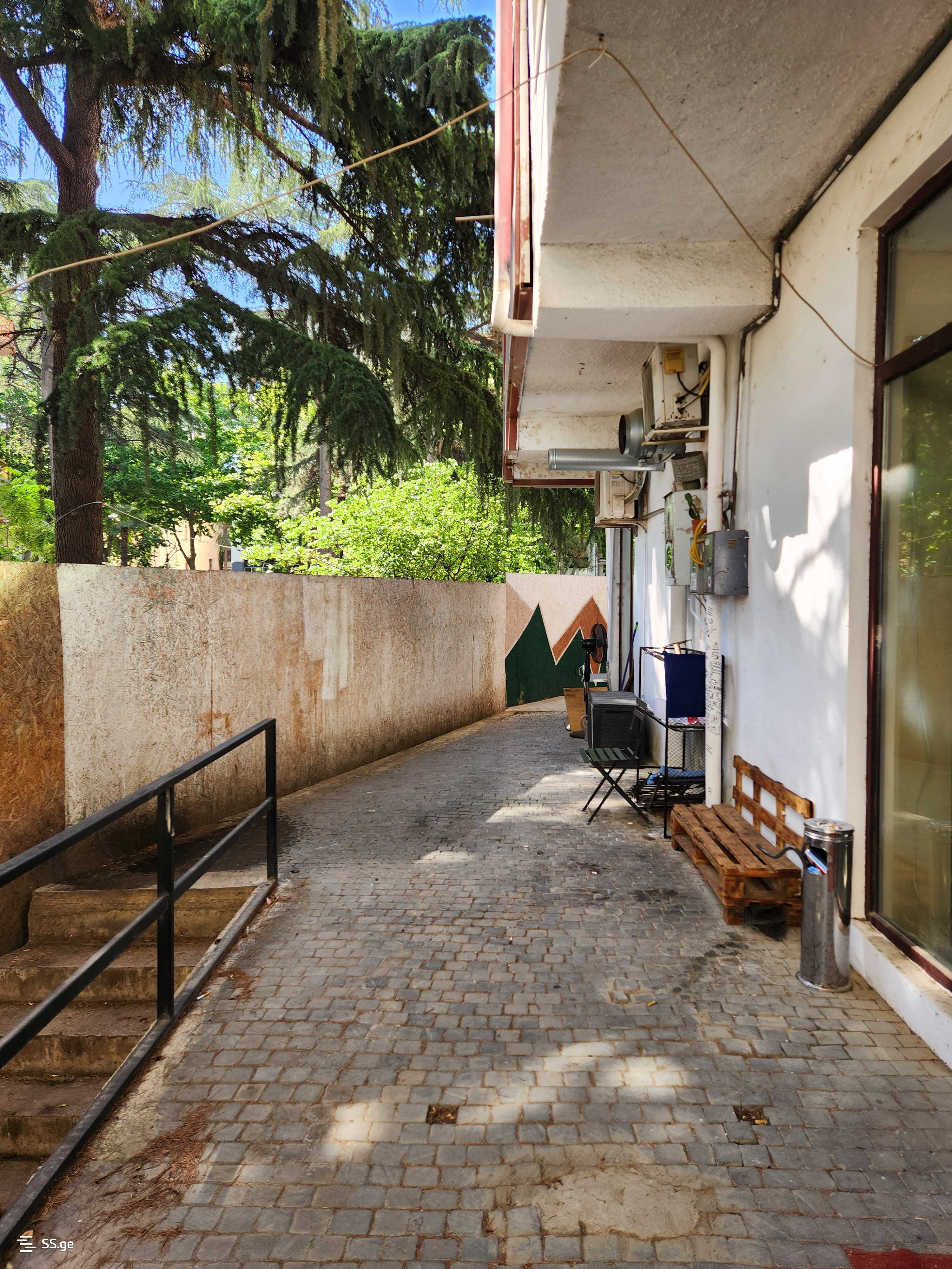 Возле кафе Waffles. Есть вода и электричество, если надо будет подведём газ. Вход с двух сторон, с улицы и из подъезда. Подойдёт для фасьфуда, для офиса, для кофейни. Скоро рядом откроется парк. Помещение частично отремонтировано, есть место под вытяжку, есть своя небольшая веранда. Возможен небольшой торг.