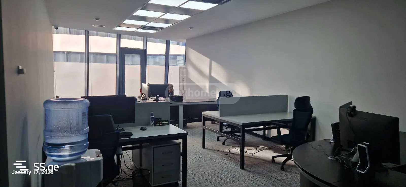 Офисное помещение расположено в бизнес-центре Кинг Давид. Помещение включает 5 независимых комнат, гостиную, кухню и 2 санитарных узла. Стоимость аренды составляет 23 евро за квадратный метр. Помещение также имеет 2 парковочных места. Вместе с указанными парковочными местами стоимость аренды составляет 24 евро за квадратный метр. Цена аренды указана без НДС.