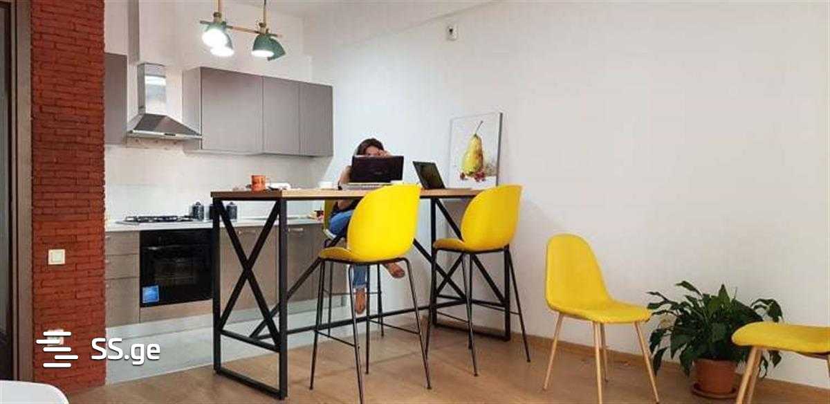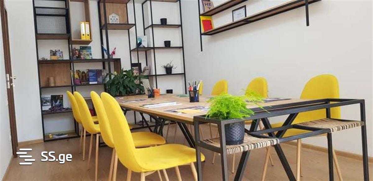 Офисное пространство в комплексе m2 на Картозии. 4 комнаты с французскими балконами, в том числе: 1 студия с мебелью, где расположена кухонная мебель, стол-под бар, стулья-под бар, диван. 1 конференц-зал, меблированный, рассчитан на 10-12 человек. 2 независимые комнаты, где вы можете разместить свою мебель. В настоящий момент есть офисные столы и стулья. В каждой комнате может разместиться 3-4 человека. Зеркальный холл и туалет.