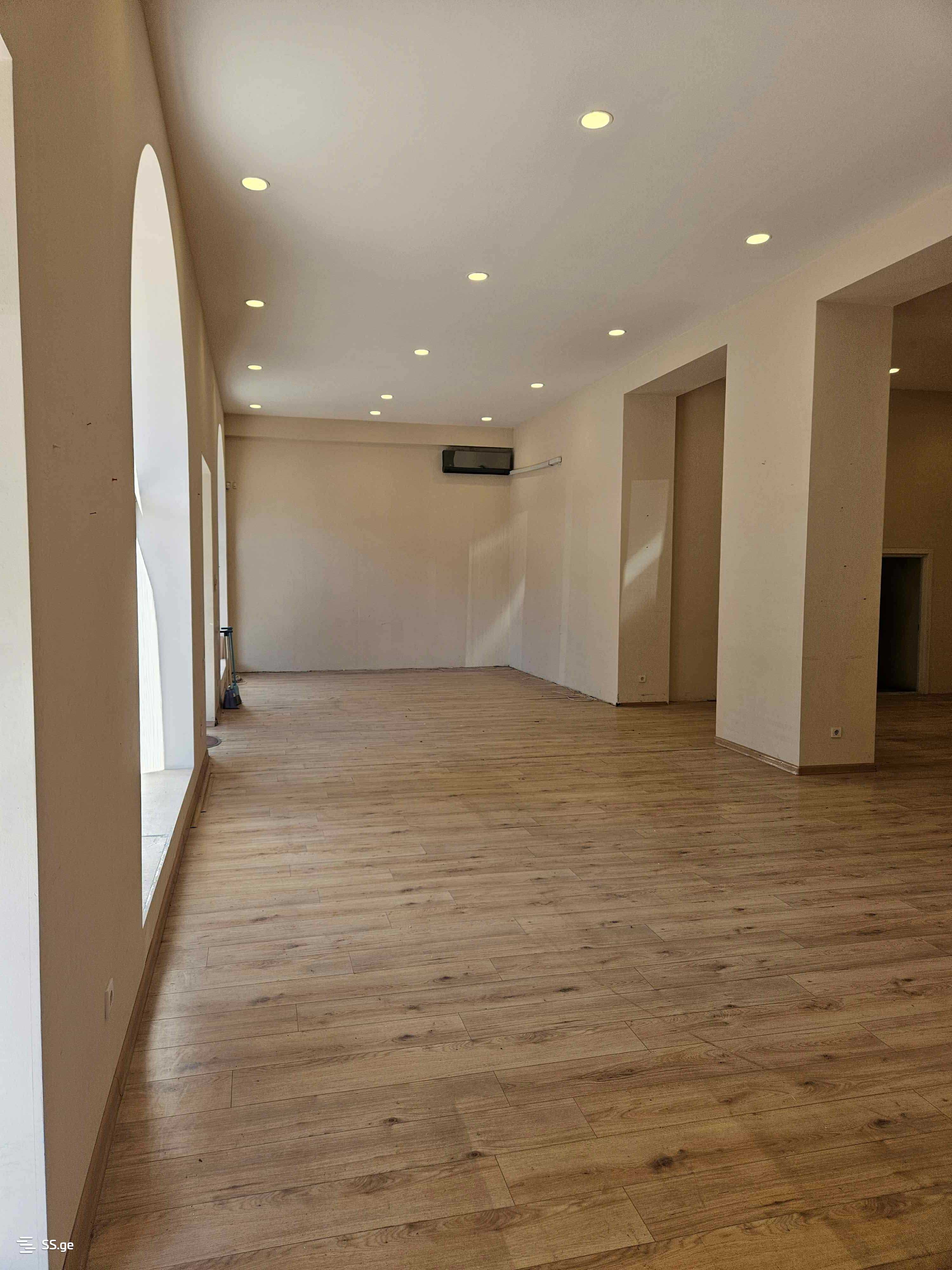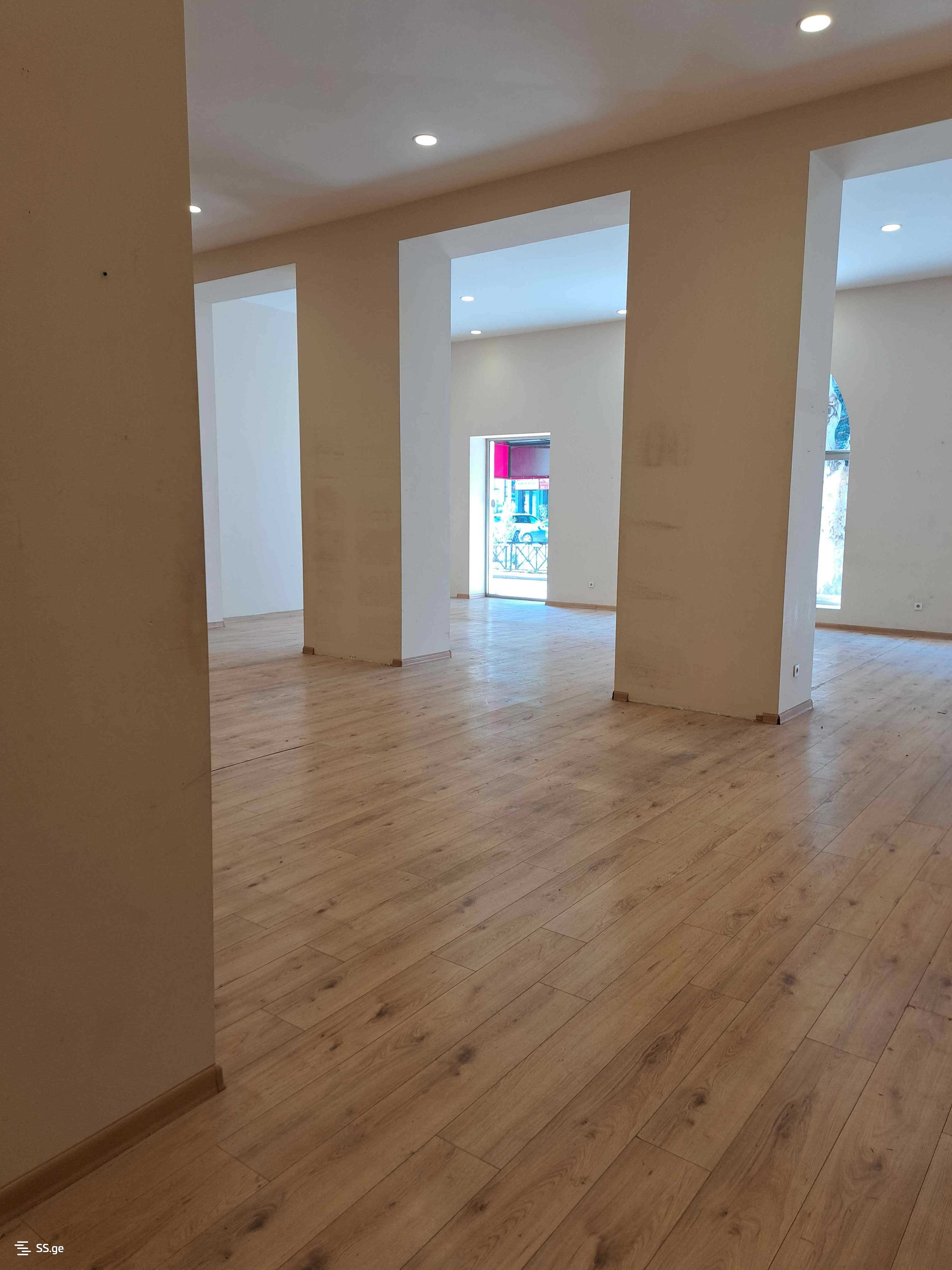 Сдается коммерческое помещение. В центре Гори, ул. Саталини. №10. С.К. 66.05.16.015 Объект витражный (2 арочных витража и 2 двери), площадь - 195 кв.м (зал - 145 кв.м), высота потолков - 4,1 м, также подвал - 90 кв.м (с внутренняя лестница). Перед зданием имеется широкий тротуар и газон. Цена 2000$ (без учета доходов) Тел. 5 95 65 65 95