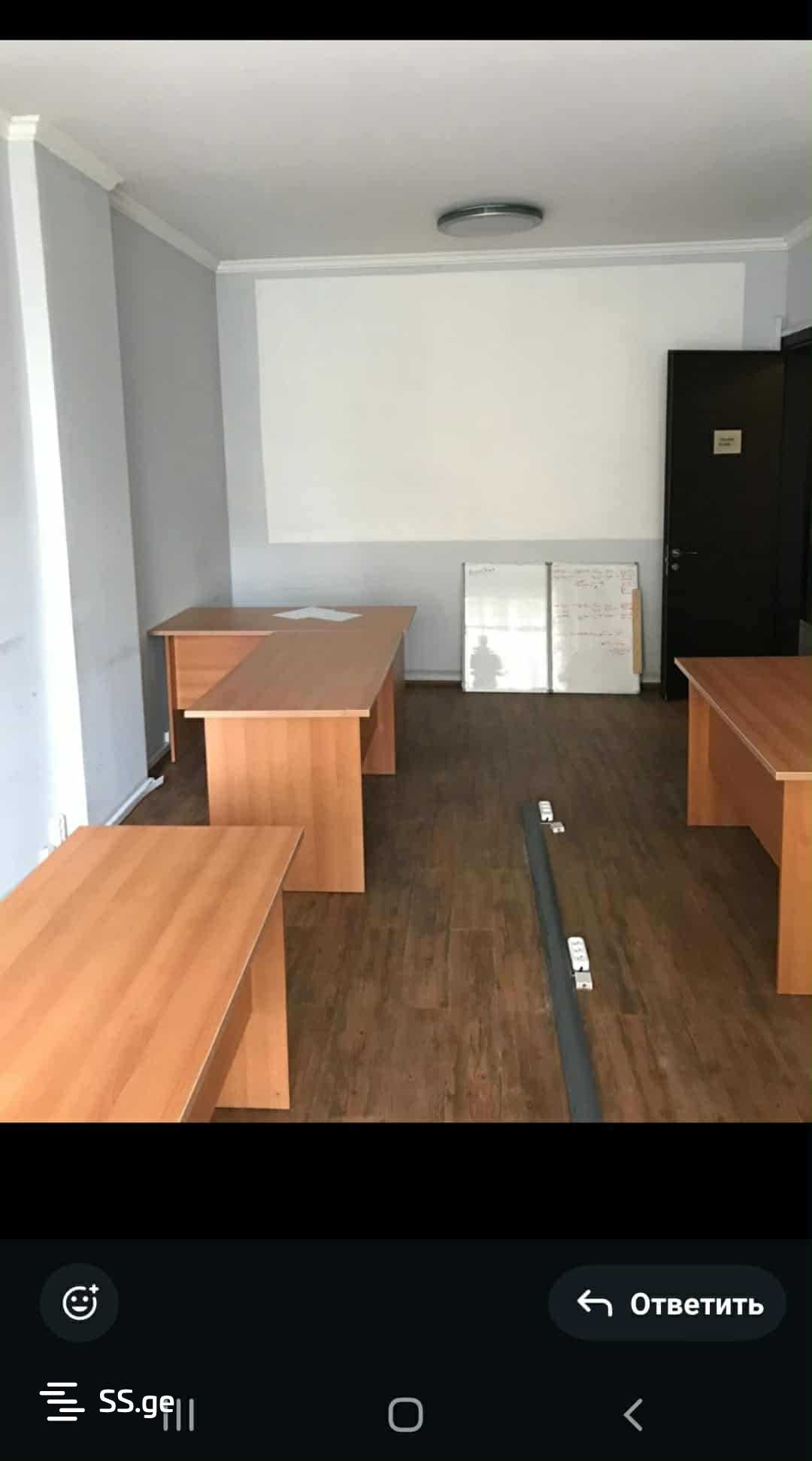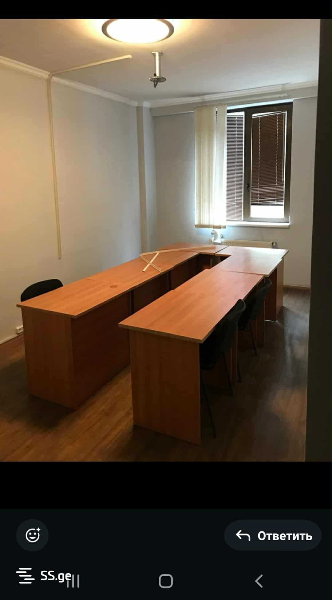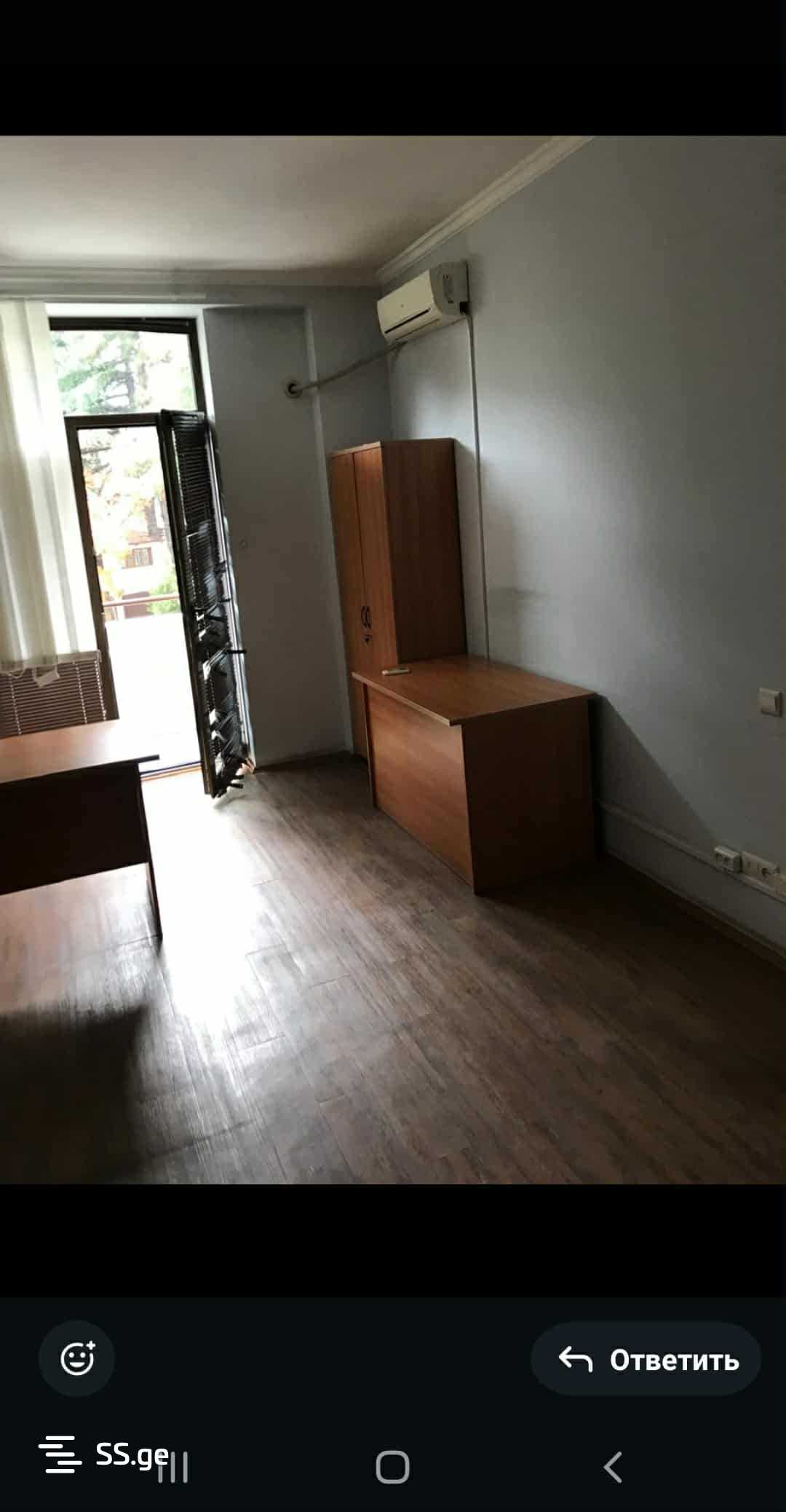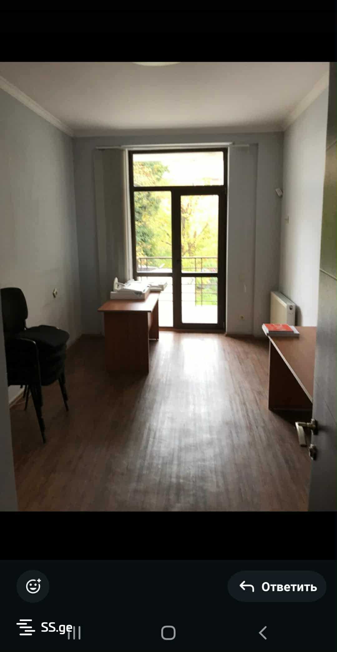 Сдается в аренду офисное помещение 113 кв.м. на 2-м этаже нового здания в средней части улицы Чавчавадзе. Светлое, солнечное, с офисной мебелью, проходное, с центральным отоплением, кондиционером, 4 комнаты, в тихом, спокойном месте, отдаленном от Чавчавадзе. Цена: 1200 + 20%. Закрытый, аккуратный, с кодированным входом. Хорошо обустроенный, охраняемый двор с шлагбаумом. С гаражом.