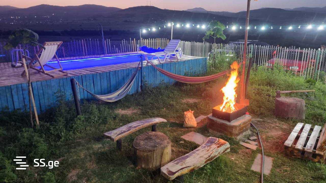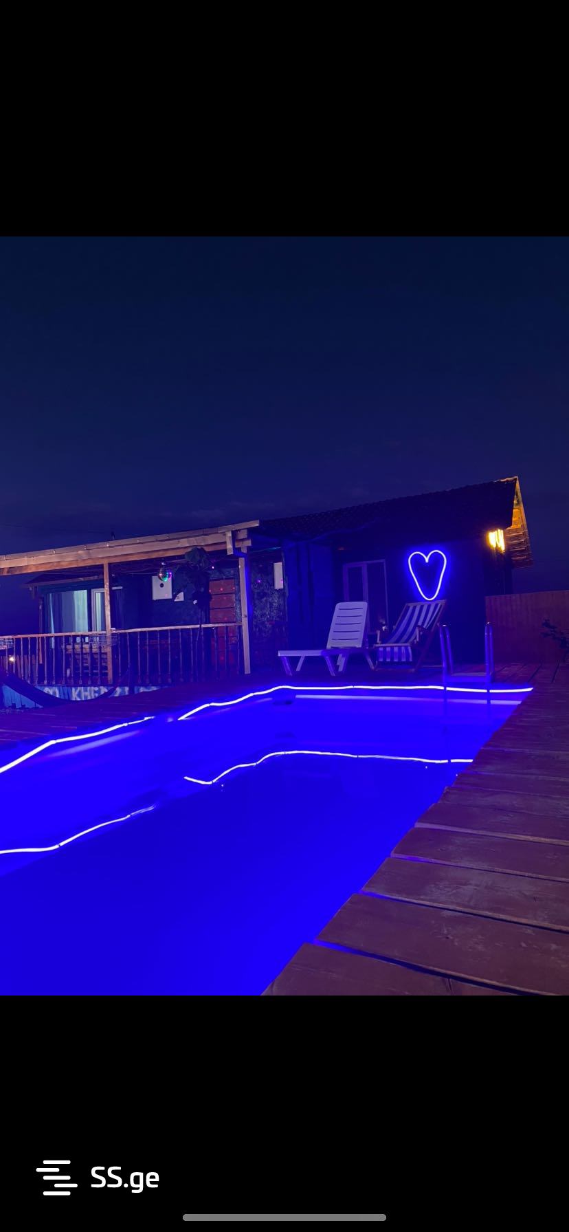 В коттедже вас ожидает: Wifi звуковая система (bluetooth) освещение (внутреннее и наружное) гигиенические средства, посуды, шампуры для гриля отопление (газ) ванная комната (горячая-холодная вода) кухня (с оборудованием) 2 изолированные спальни, 6+1 кроватей. У нас нет ограничений по музыке - 350 лари в субботу - 450 лари до 10-12 человек Заселение в 15:00 Выезд в 12:00 Бассейн (3x6x1.5) в Базалети.