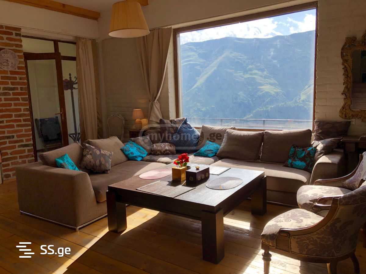 Наш коттедж расположен в центре Гудаури, в 50 м от супермаркета Никора и в 400 м от 1-й канатной дороги. Номера: Это современный коттедж с прекрасным видом на горы и собственной террасой. Дом рассчитан максимум на 16 человек и сдается целиком. В коттедже большая гостиная с кухней, лыжная база, две трехместные комнаты, пять двухместных номеров, 5 ванных комнат. Сервис: WiFi на всей территории коттеджа; Смарт ТВ; лыжная база (хранилище лыжного снаряжения); Залог за парковку: Коттедж можно забронировать, заплатив часть общей стоимости. В случае отмены бронирования позднее, чем за 60 дней до прибытия, сумма не возвращается. Цена варьируется в зависимости от количества гостей и дней.