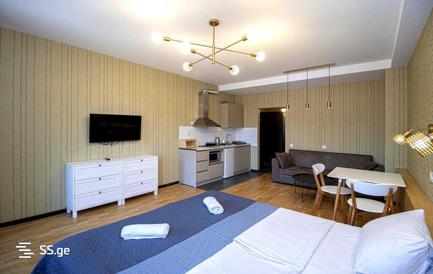 Прекрасное местоположение в самом сердце старого города. На улице Курчули (район Авлабар) мы предлагаем вам великолепную квартиру с захватывающим видом на город в новостройке! В доме есть хороший лифт, чистый вход, закрытый двор и собственная комната для хранения. В квартире установлено центральное отопление и кондиционер. Это просторная студия площадью 45 м2 с отдельным коридором и санузлом. Также есть вся необходимая посуда, техника и интернет. Вы будете жить на спокойной и уютной улице в районе с хорошей инфраструктурой: метро, остановка общественного транспорта, овощной рынок, множество магазинов. Прямо в центре Старого Тбилиси, где так приятно гулять. Десять минут пешком к живописному винному склону, и вы на Мейдане, где находятся серные бани, Шарден, крепость Нарикала и ботанический сад. Все основные туристические маршруты находятся в шаговой доступности. Квартира солнечная, светлая и теплая. В ней есть все, что нужно для комфортного отдыха. Стоимость аренды составляет 400 долларов в месяц. Фиксированные коммунальные платежи - 100 долларов (включая: электричество, газ, воду, интернет, лифт, уборку вступления)