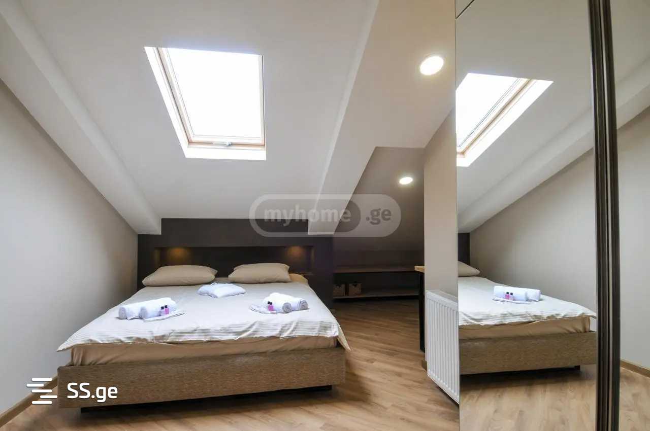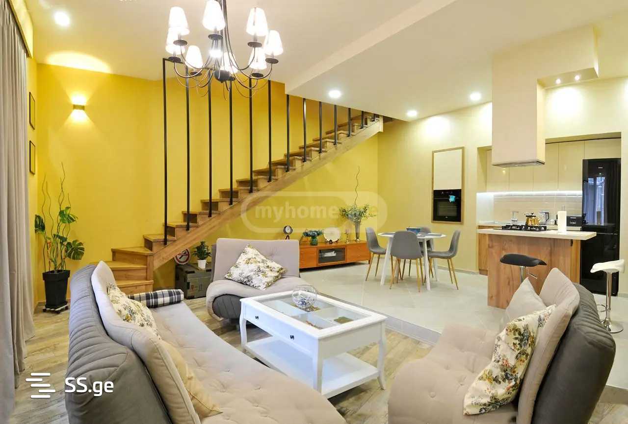 Сдается современная, хорошо оборудованная двухуровневая квартира площадью 125 м² в Сологлади на улице Иашвили с 2 спальнями, 2 санузлами и балконом.