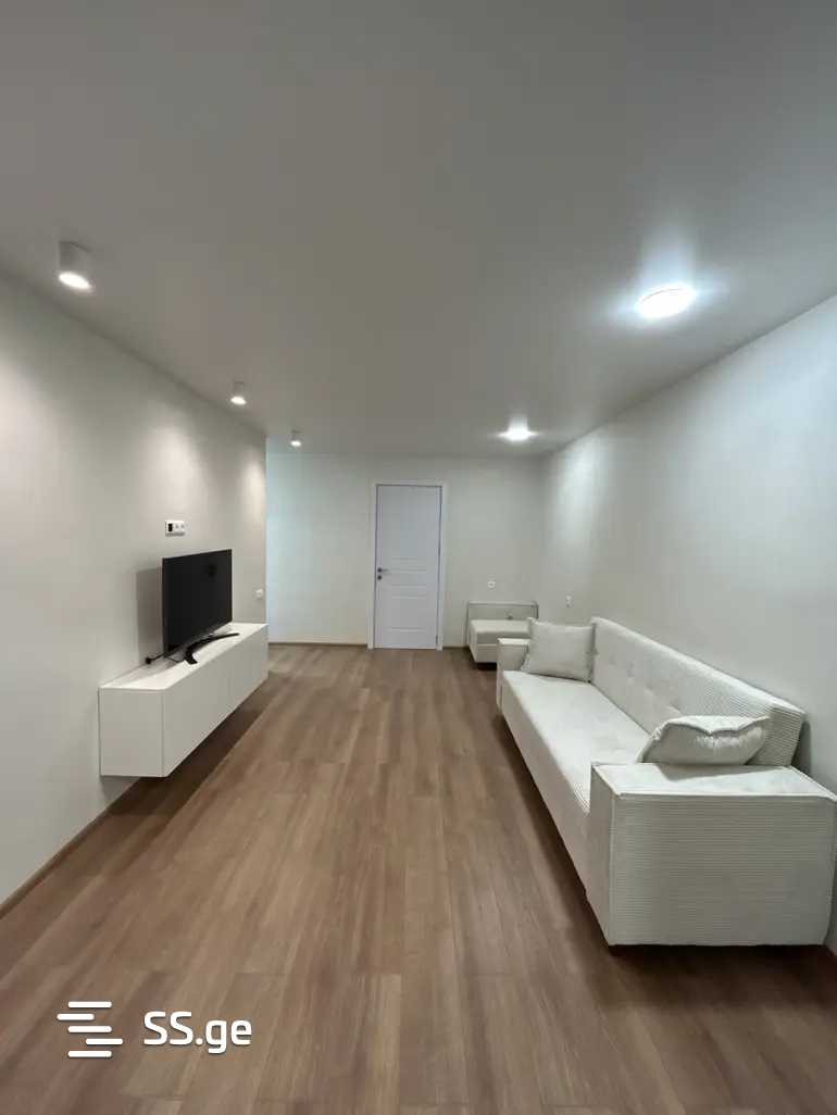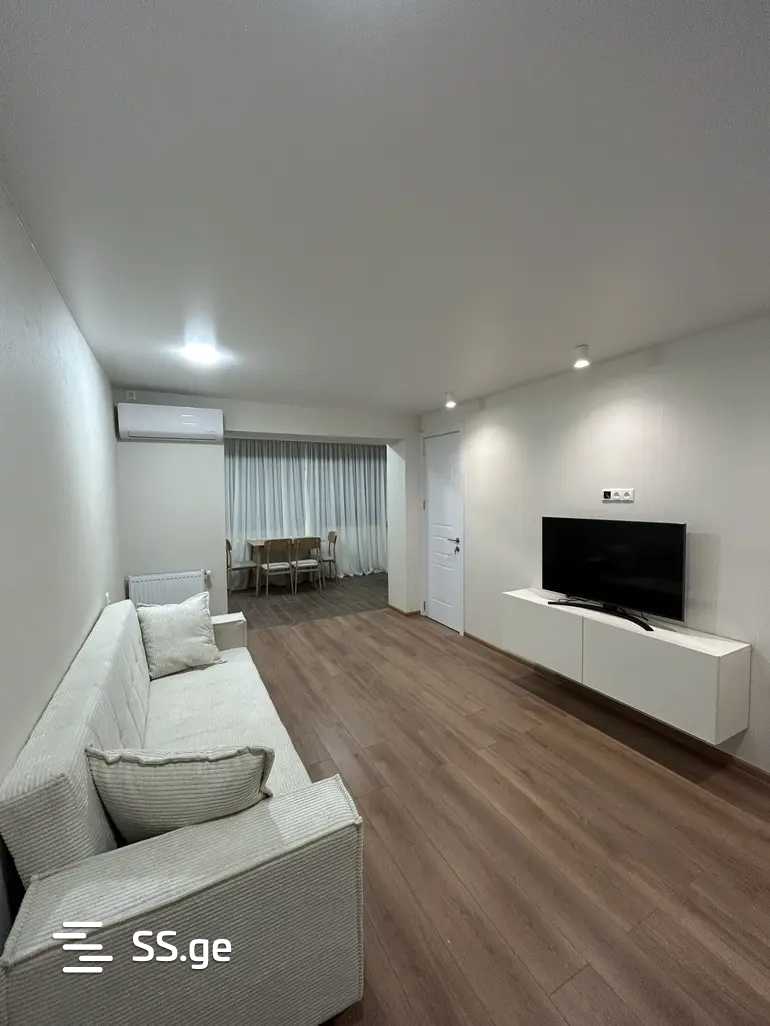 Сдается квартира со свежим ремонтом, оборудованная новой мебелью и техникой, на проспекте Церетели. Рядом со зданием находится сквер и школа.