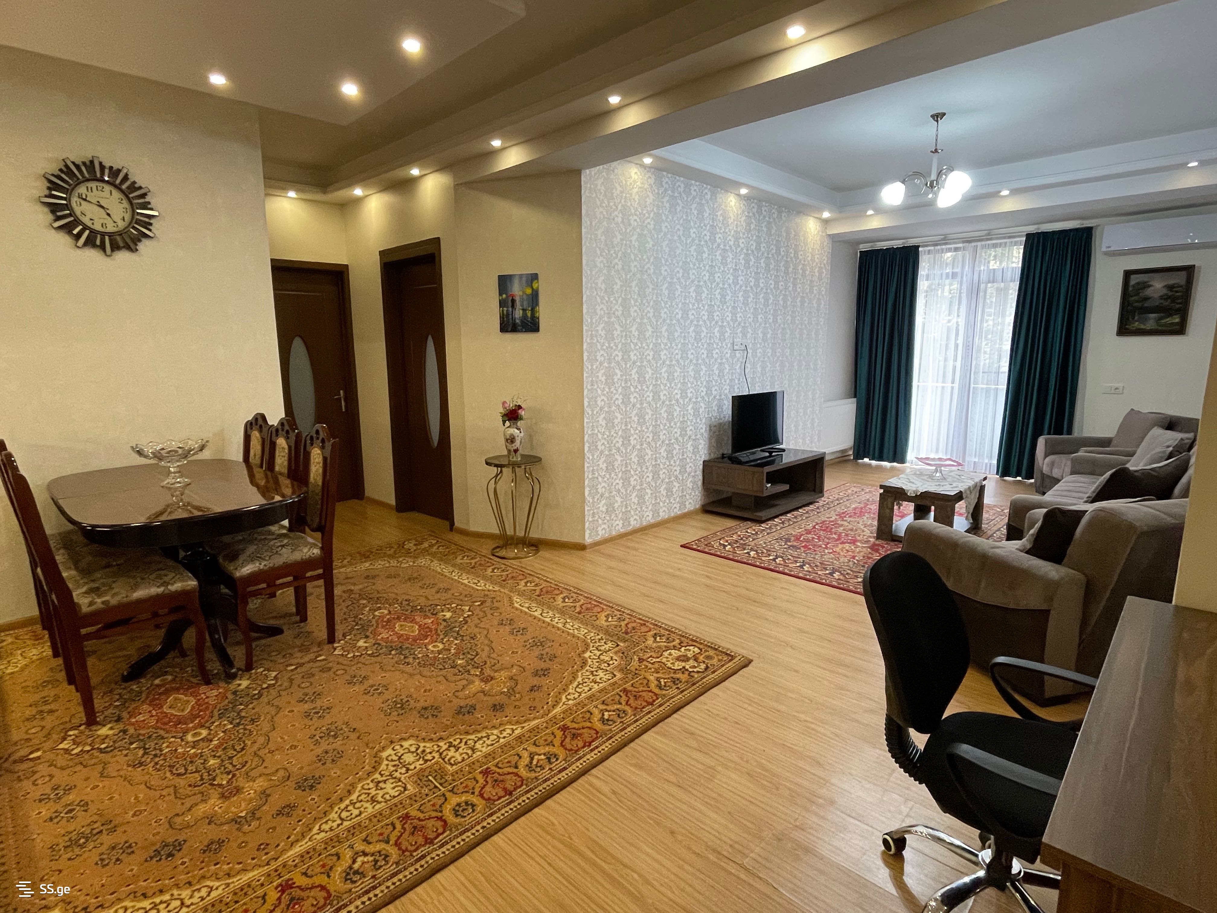 Сдается в строящемся, престижном районе (прямо по улице Канделаки) чистая и аккуратная квартира, меблированная и полностью оборудованная. с двумя подземными парковками. Центральное отопление, два кондиционера, два балкона (оба выходят на улицу Канделаки), чистый утепленный подъезд, домофон в здании, гараж и подъезд оборудованы видеорегистратором.