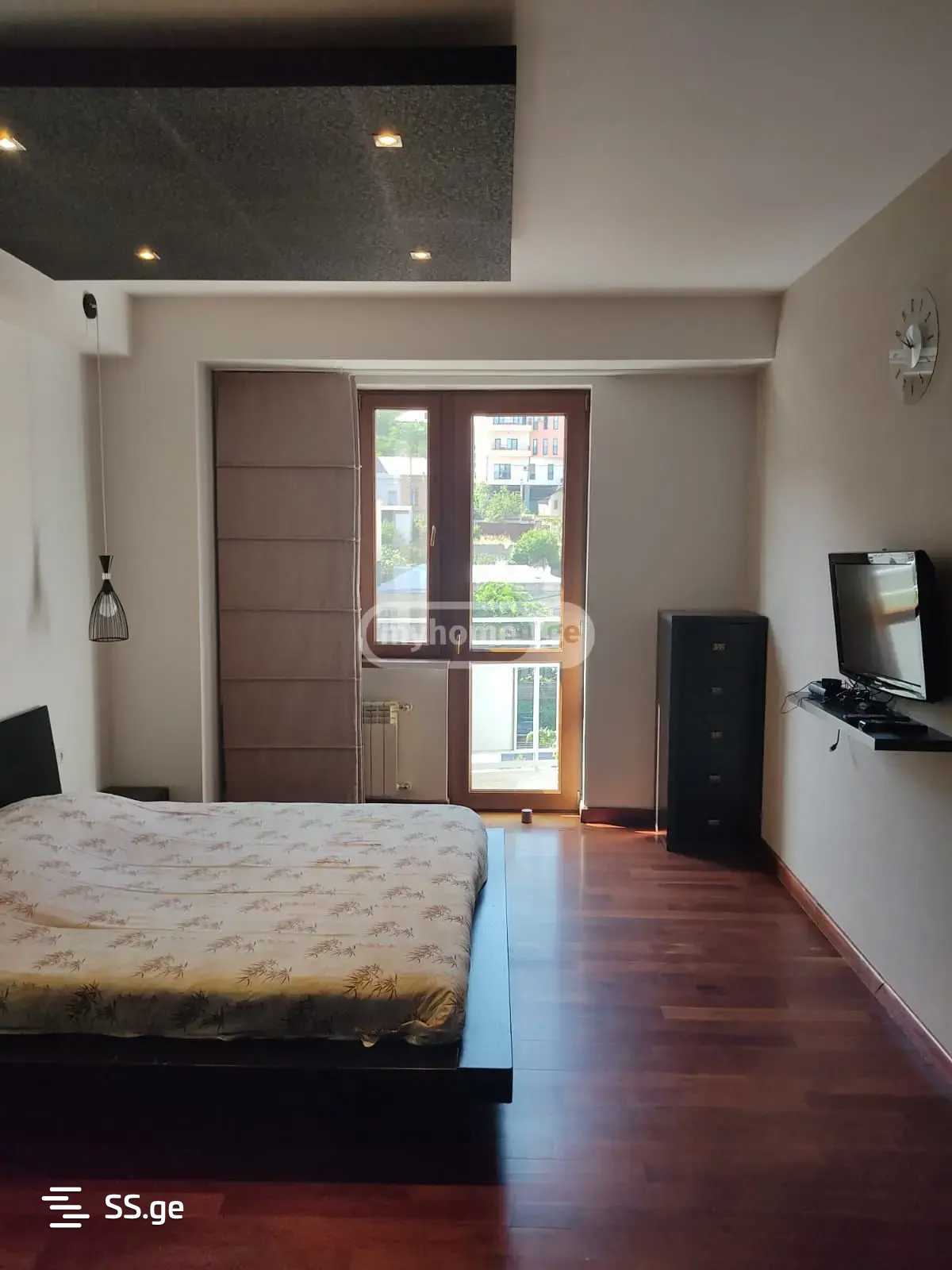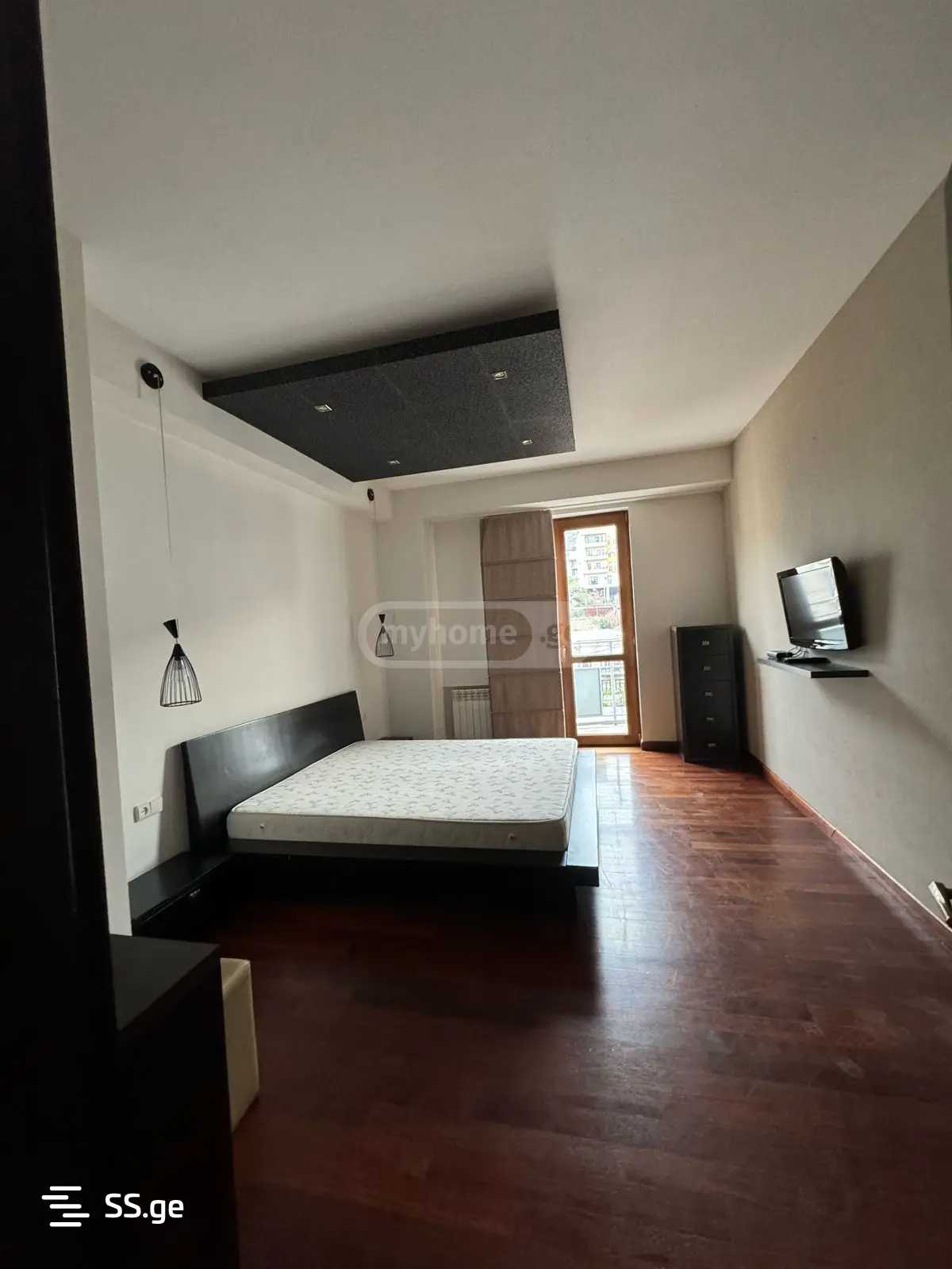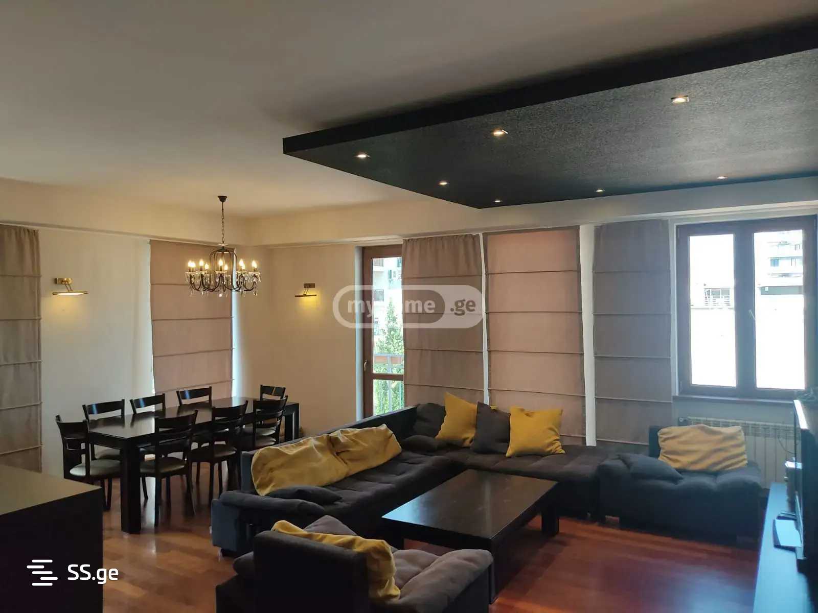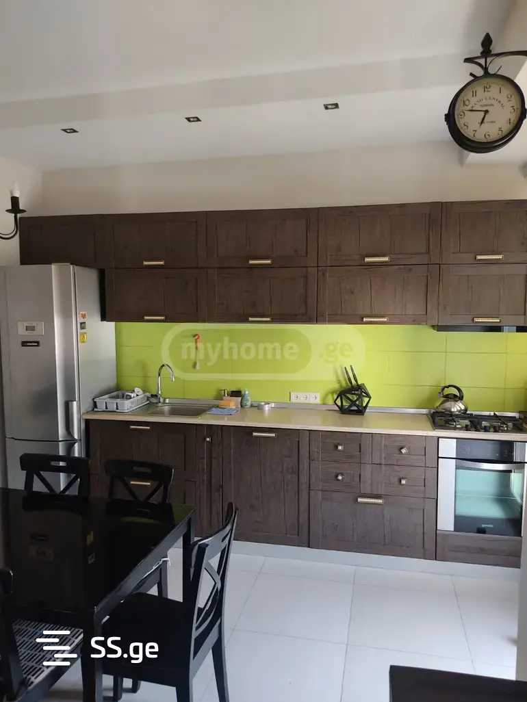 Она состоит из гостиной, трех спален, кухни и двух санузлов. Обставлена мебелью и крупной техникой.