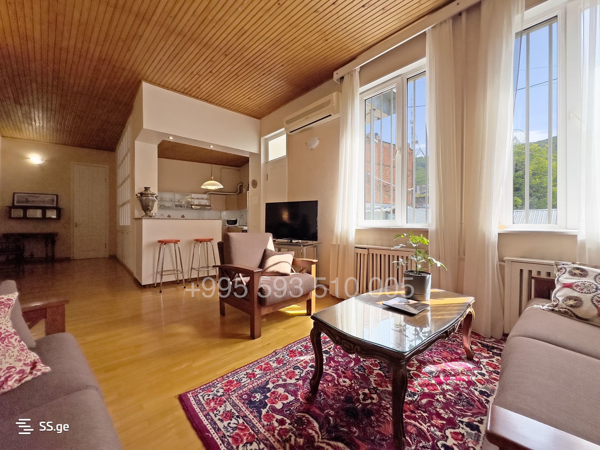 Сдается 2-комнатная квартира в Вере, на улице Дмитрия Бакрадзе. Квартира очень светлая, проницаемая и уютная. Есть большая гостиная и столовая, отдельная кухня, две спальни, рабочая зона, отдельная ванная комната и туалет, кладовая и два балкона. Квартира полностью оборудована бытовой техникой, посудой и мебелью.