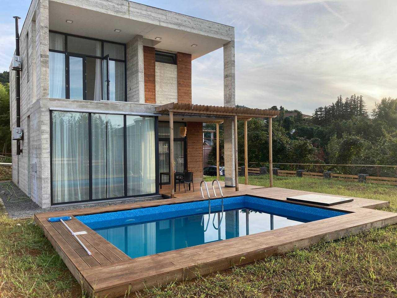 В продаже 2 Виллы, каждая площадью 210 кв.м. на отдельном участке 600 кв.м. со своим бассейном 24 кв.м. На тихой улице в Ахалсопели с видом на море, горы, город, реку Чорох. Построены по уникальному авторскому проекту. Применены инновационные технологии монолитного строительства. Панорамные окна. Отделка «под ключ». Все коммуникации подключены, техника и мебель ведущих производителей, элементы отделки и интерьера авторской работы.