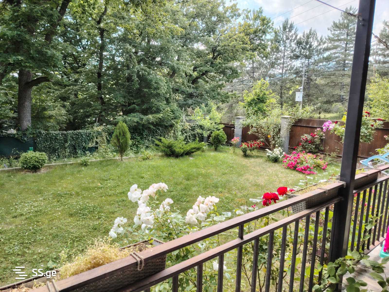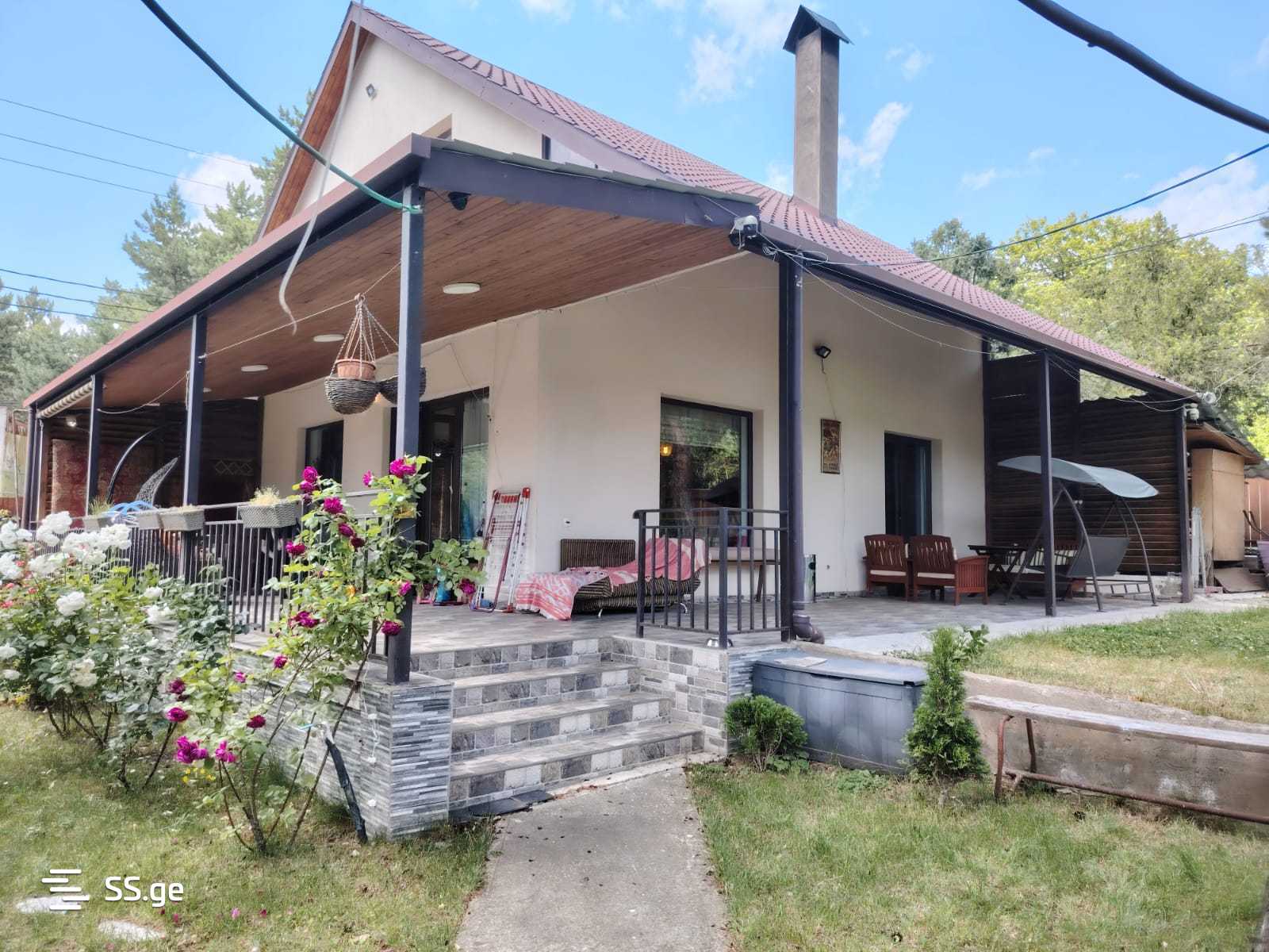 В Кикети, в центральном месте, в 18 км от Тбилиси, продается новостройка, комфортабельный частный дом в 2 этажа площадью 180 кв.м: студийная комната, 1 спальня, ванная/туалет, кладовая на 1-м этаже; 3 спальни + ванная/туалет на 2-м этаже; 2 большие веранды, подвал; центральное отопление, электричество, вода, интернет, зеленый двор площадью 700 кв.м: много роз, гортензий, ежевики, грецкого ореха, яблок, малины; отдельная территория для огорода, во дворе растут несколько многолетних елей; вольер; 10 метров от остановки автобуса и спортзала. Кадастровый код 81.01.01.963