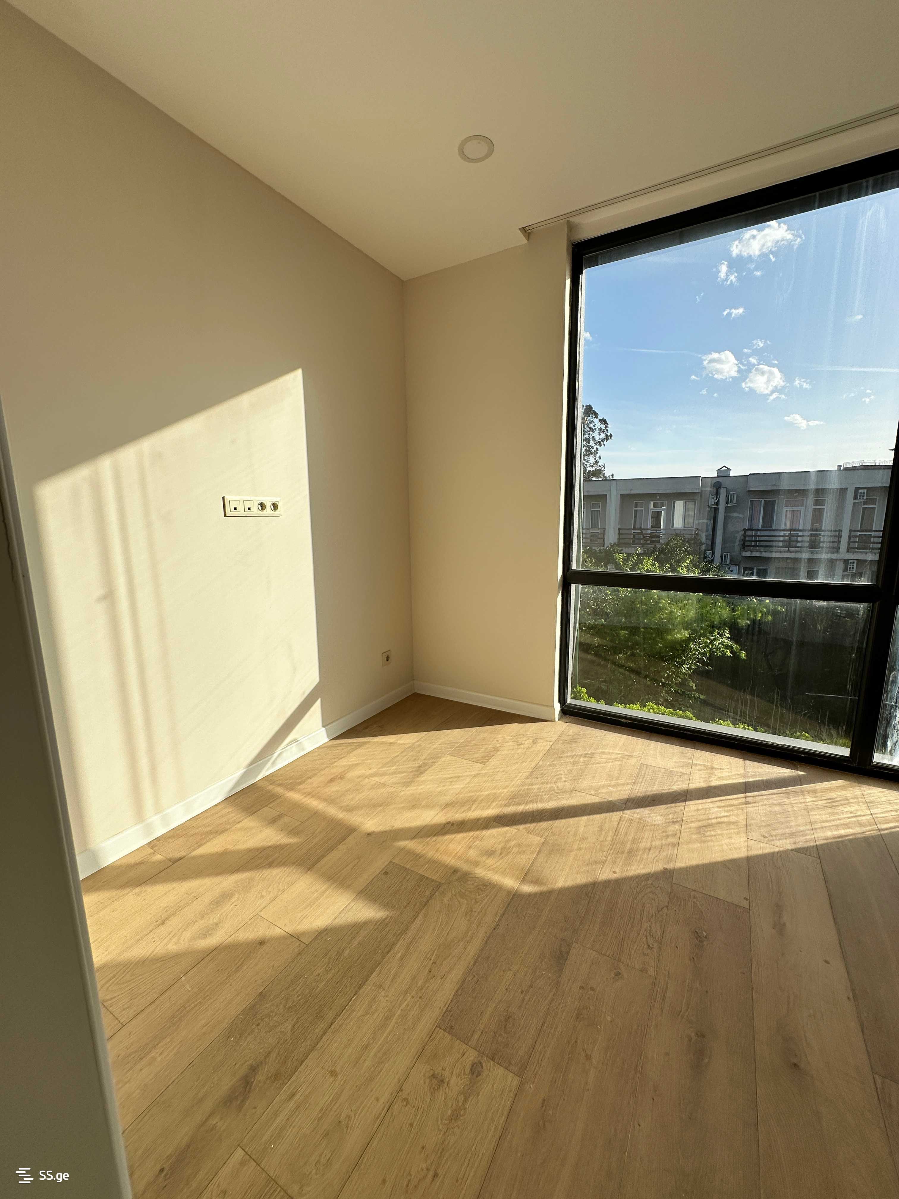 Таунхаус в 3 этажа площадью 117,6 м² включает кухню и гостиную на первом этаже, две спальни на втором, спальню на третьем и большую террасу с живописным видом на горы. Дом газифицирован, пол на всех этажах имеет водяное отопление.