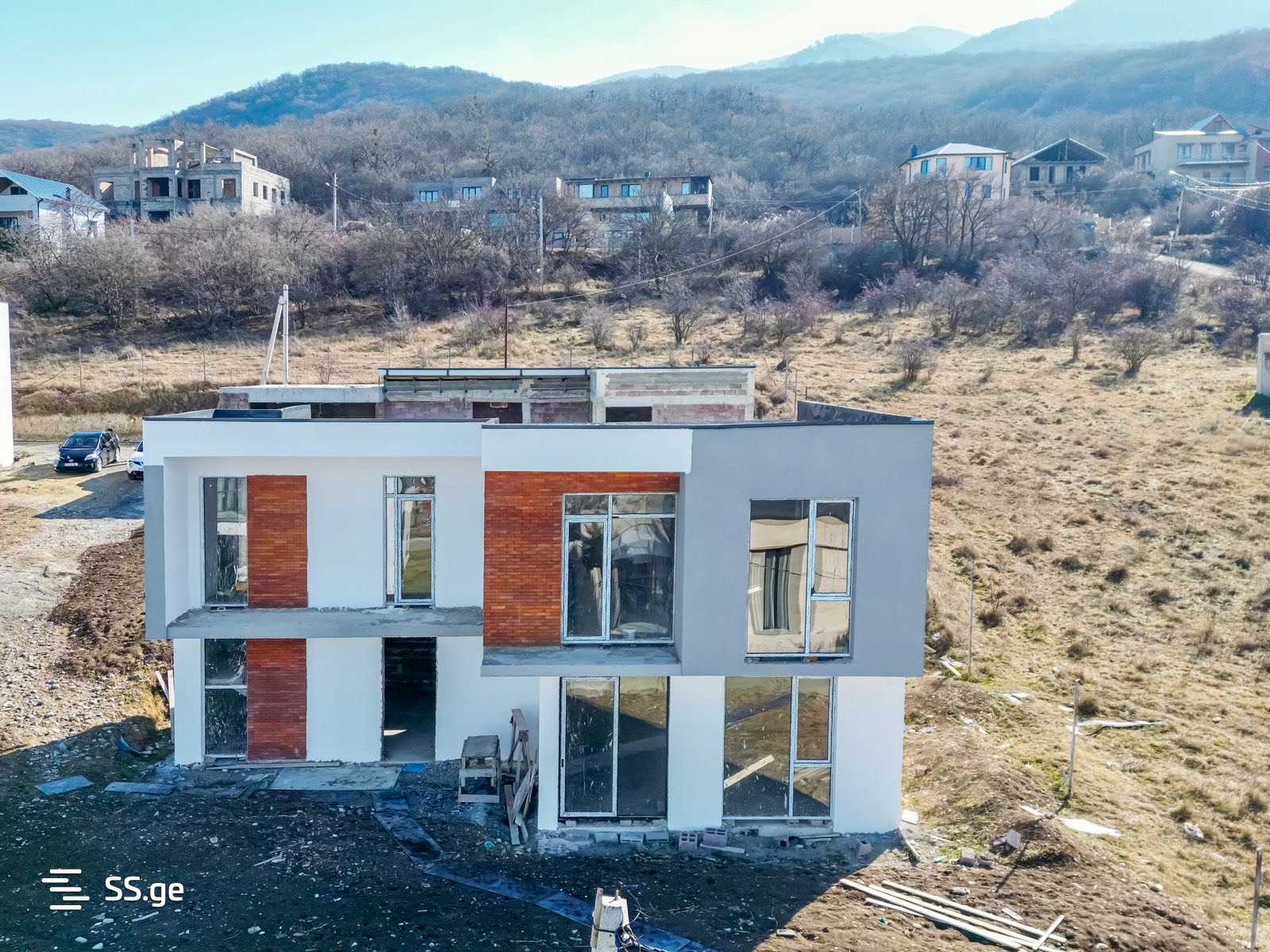 В Сагурамо, в лучшем месте, на дороге Зедазни, рядом с лесом, продается одноэтажный загородный дом с верандой, в состоянии черного каркаса. Дом построен из пемзоблоков толщиной 30 см и лучших строительных материалов (учитывая конструкцию дома, есть возможность построить второй этаж). Общая площадь дома 227,8 кв.м. На втором этаже имеется летняя площадка/веранда. Площадь земельного участка - 609 кв.м. (72.06.16.081.970). Территория вокруг участка полностью благоустроена. Подведены коммуникации. Мы можем предложить вам более просторные двухэтажные коттеджи в том же месте, с внешней облицовкой или без нее.